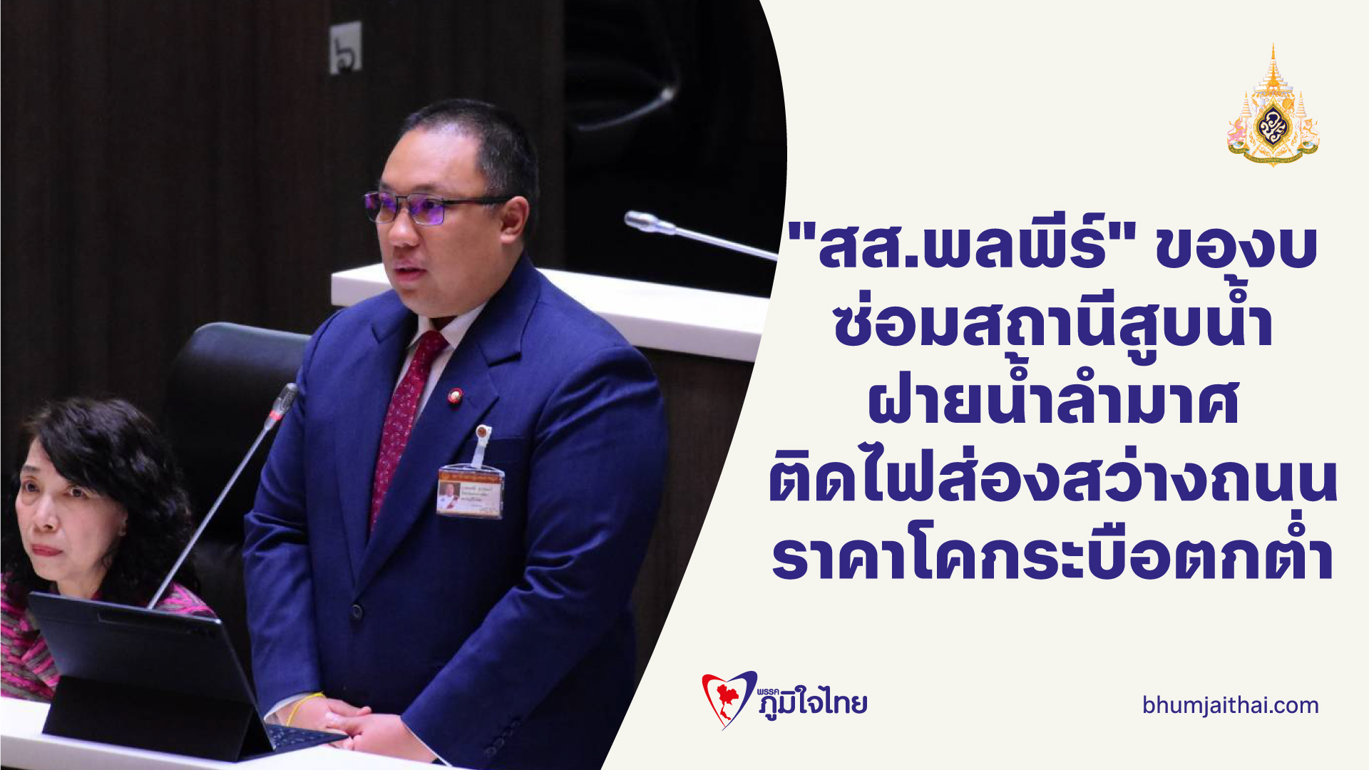 วันที่ 27 กุมภาพันธ์ 2568 นายพลพีร์ สุวรรณฉวี สมาชิกสภาผู้แทนราษฎรจังหวัดนครราชสีมา พรรคภูมิใจไทย หารือประธานสภาผู้แทนราษฎร ว่า พี่น้องชาวตําบลโนนตูม ของบซ่อมแซมสถานีสูบน้ำฝายลำมาศ บริเวณหมู่ 3 ตําบลโนนตูม บริเวณนี้ฝายค่อนข้างต่ำ เพราะฉะนั้นต้องการการซ่อมบํารุงและประตูน้ำกั้นน้ำจะได้มีน้ำใช้ในช่วงหน้าแล้ง ซึ่งจะส่งผลประโยชน์ให้กับประชาชนทั้ง 6 ตําบลคือ ตําบลงิ้ว ตําบลกงรถ เทศบาลกงรถ ตําบลหลุ่งตะเคียน อําเภอห้วยแถลง ตําบลโนนตูม ตําบลสาหร่าย อําเภอชุมพล