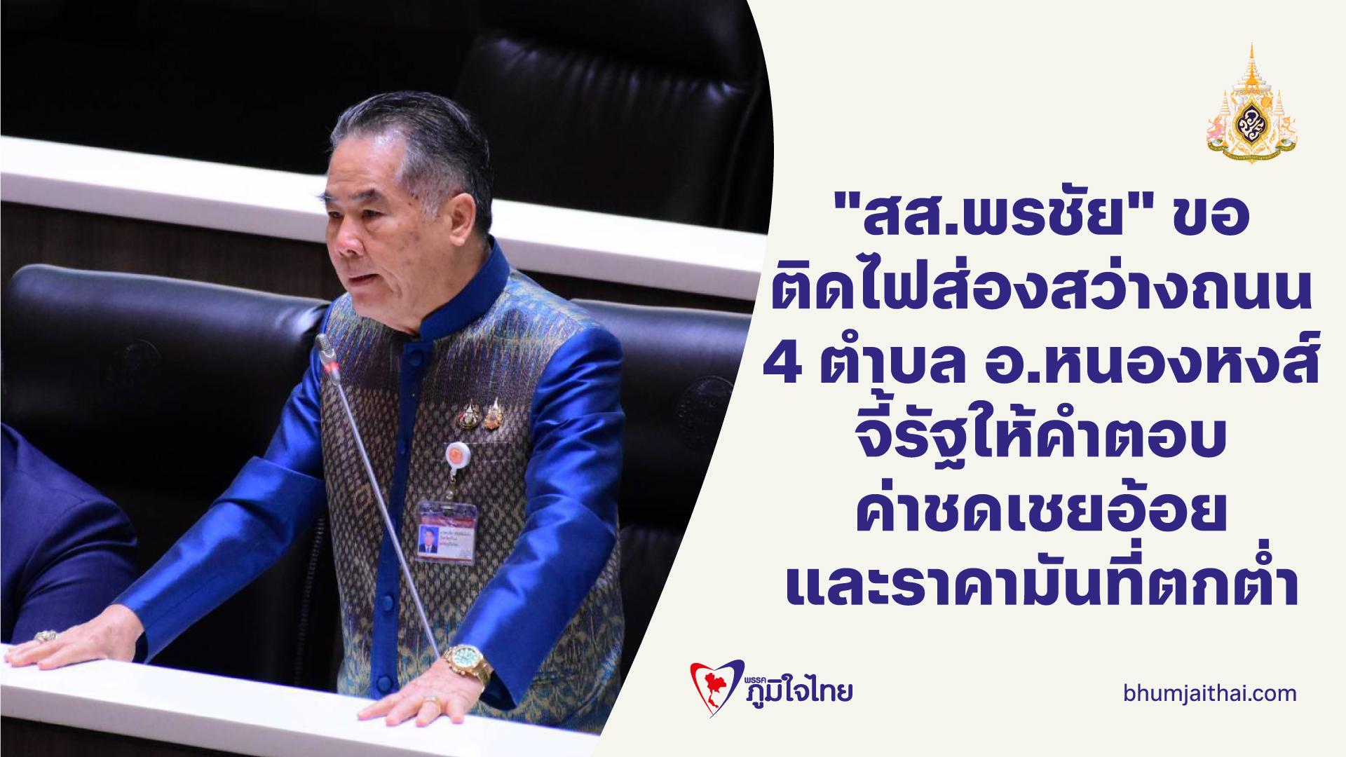 "สส.พรชัย" ขอติดไฟส่องสว่างถนน4 ตำบล อ.หนองหงส์จี้รัฐให้คำตอบค่าชดเชยอ้อยและราคามันที่ตกต่ำ