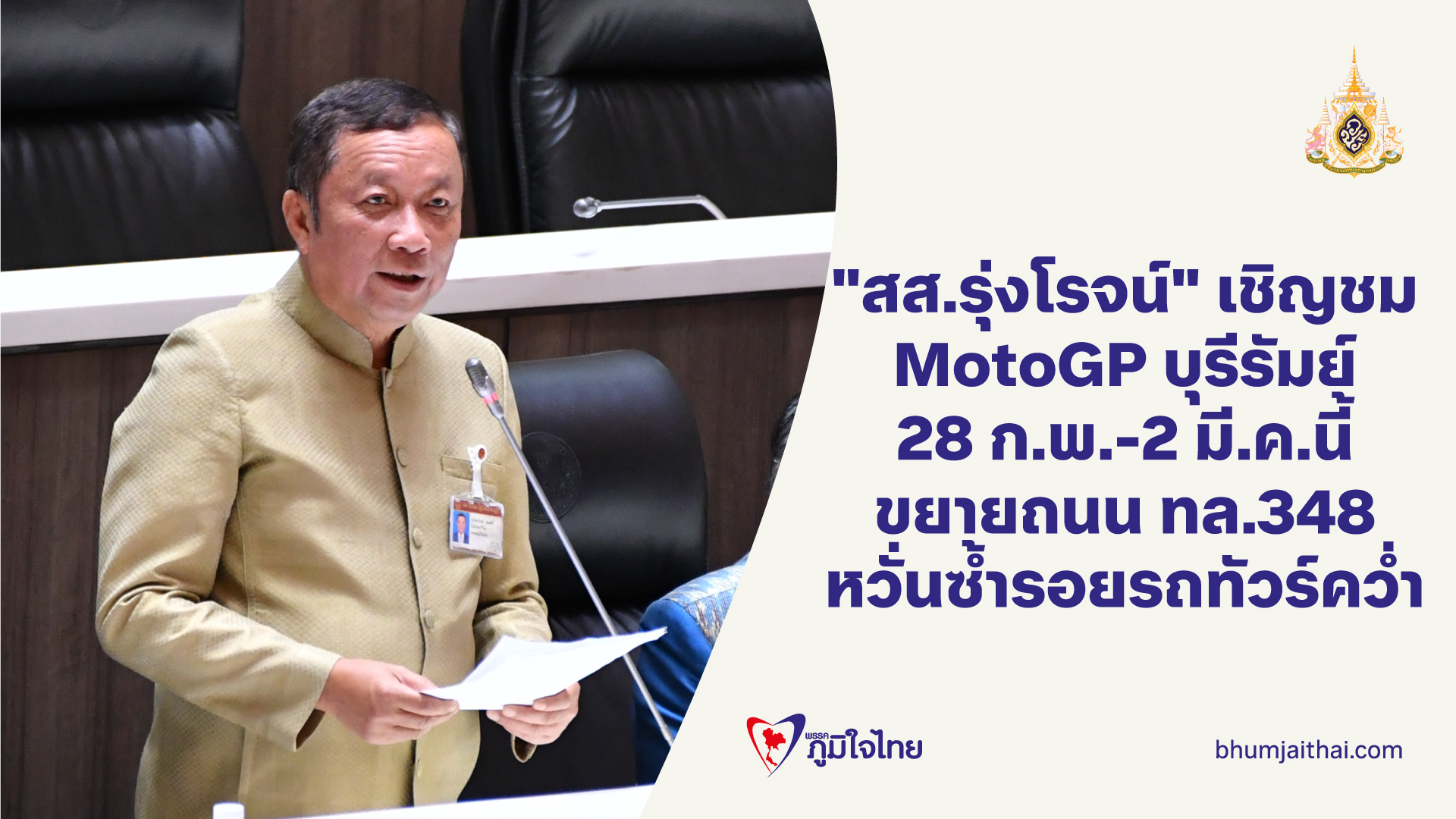 "สส.รุ่งโรจน์" เชิญชม MotoGP บุรีรัมย์ 28 ก.พ.-2 มี.ค.นี้ ขยายถนน ทล.348 หวั่นซ้ำรอยรถทัวร์คว่ำ