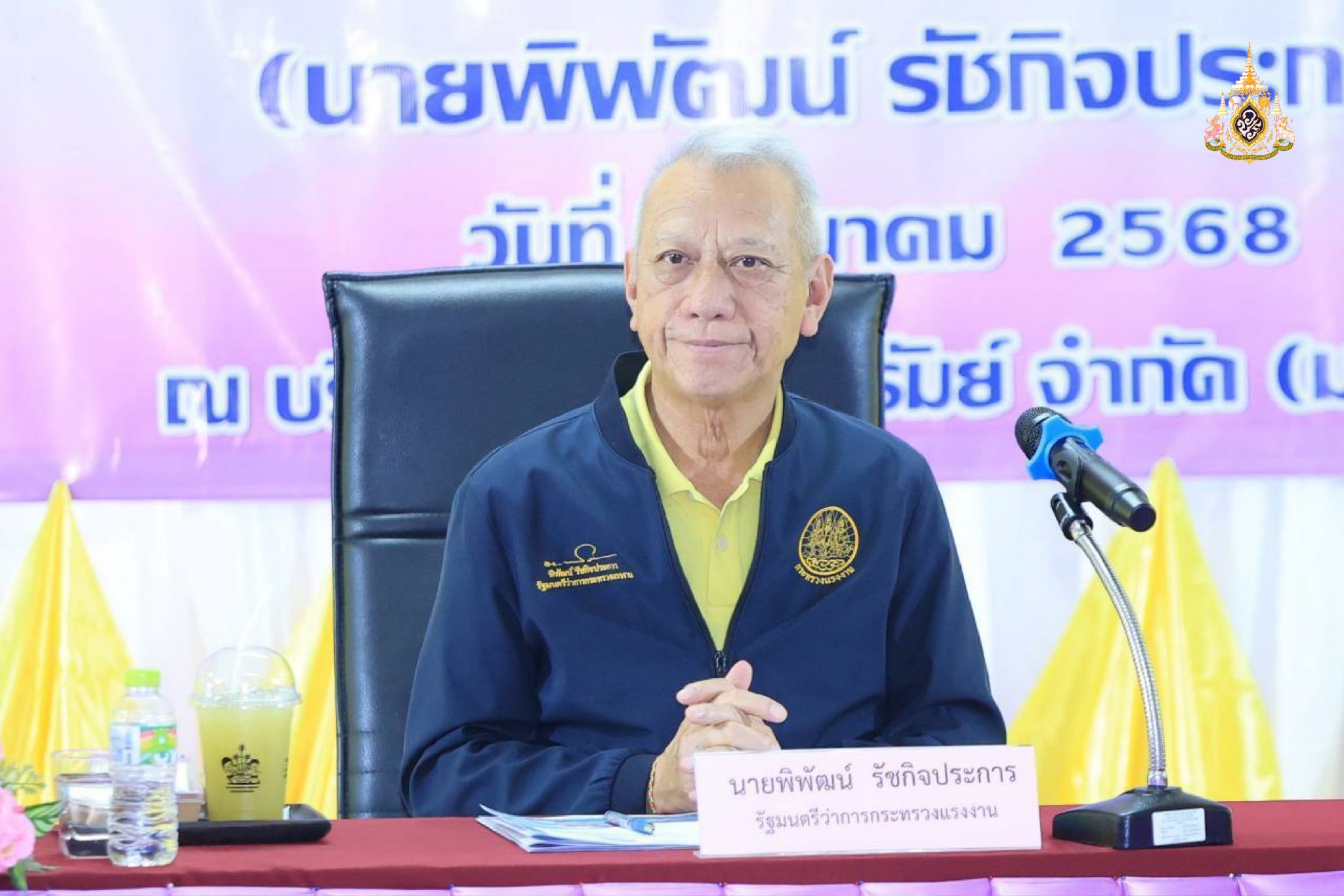วันที่ 1 มีนาคม 2568 - นาย พิพัฒน์ รัชกิจประการ รัฐมนตรีว่าการกระทรวงแรงงาน ลงพื้นที่ตรวจเยี่ยม บริษัท โรงงานน้ำตาลบุรีรัมย์ จำกัด (มหาชน) จังหวัดบุรีรัมย์ เพื่อติดตามการดำเนินงานด้านการบริหารแรงงานต่างด้าวในส่วนภูมิภาค โดยมีการพบปะผู้ประกอบการ นายจ้าง และแรงงานต่างด้าว เพื่อมอบนโยบายและรับฟังความคิดเห็น เพื่อพัฒนาระบบบริหารจัดการแรงงานให้เกิดประโยชน์สูงสุดทั้งต่อภาคธุรกิจและแรงงานเน้นสร้างต้นแบบการบริหารแรงงานต่างด้าวที่เหมาะสม โดยมี นายปิยะ ปิจนำ ผู้ว่าราชการจังหวัดบุรีรัมย์ กล่าวต้อนรับ นายพิเชษฐ์ ทองพันธ์ ผู้ตรวจราชการกระทรวงแรงงาน ผู้บริหารกระทรวงแรงงาน ผู้ประกอบการภาคเอกชน กรรมาธิการและที่ปรึกษาคณะกรรมาธิการแรงงานสภาผู้แทนราษฎร สส.สนอง เทพอักษรณรงค์ หัวหน้าส่วนราชการสังกัดกระทรวงแรงงานจังหวัดบุรีรัมย์ ร่วมต้อนรับ