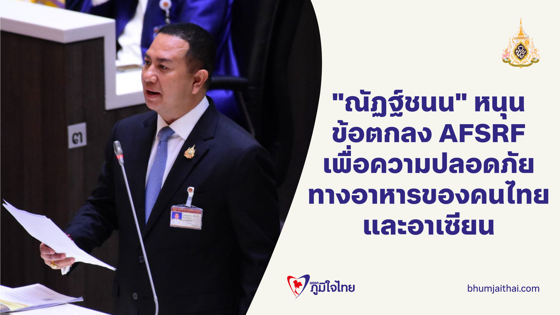 "ณัฏฐ์ชนน" อภิปราย สนับสนุนข้อตกลง AFSRF เพื่อความปลอดภัยทางอาหารของคนไทยและอาเซียน พร้อมป้องกันการกีดกันทางการค้าจากประเทศนอกภูมิภาค