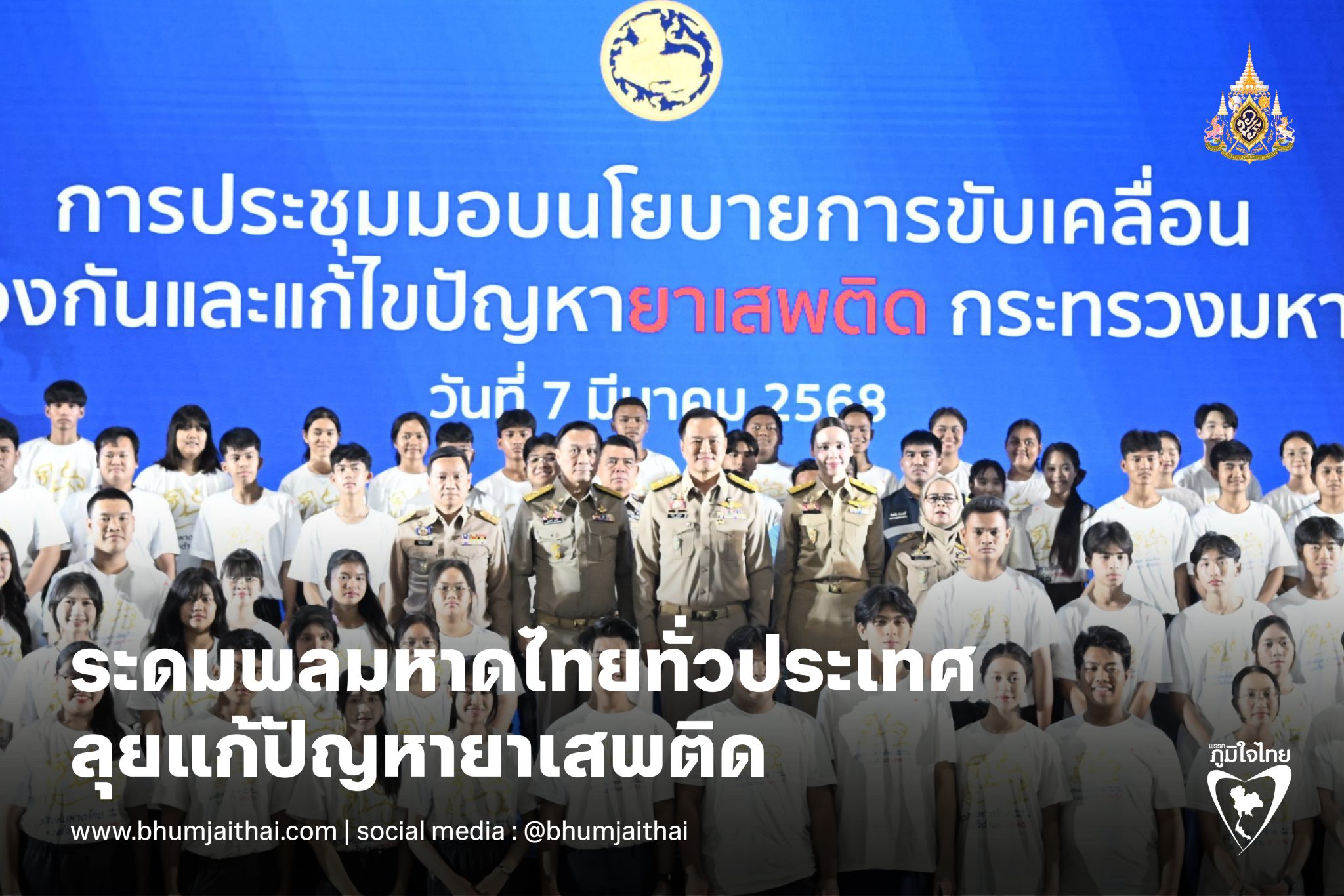 น.ส.ไตรศุลี ไตรสรณกุล เลขานุการ รมว.มหาดไทย และโฆษกกระทรวงมหาดไทย เปิดเผยว่า วันนี้ (7 มี.ค. 68) เวลา 13.30 น. นายอนุทิน ชาญวีรกูล รองนายกรัฐมนตรี และ รมว.มหาดไทย เป็นประธานการประชุมมอบนโยบายการขับเคลื่อนการป้องกันและแก้ไขปัญหายาเสพติดของกระทรวงมหาดไทย โดยมี นายทรงศักดิ์ ทองศรี รมช.มหาดไทย น.ส.ซาบีดา ไทยเศรษฐ์ รมช.มหาดไทย นายอรรษิษฐ์ สัมพันธรัตน์ ปลัดกระทรวงมหาดไทย และผู้บริหารกระทรวงมหาดไทย เข้าร่วม ณ อาคารอิมแพ็ค ฟอรั่ม ฮอลล์ 4 ศูนย์แสดงสินค้าและการประชุม อิมแพ็ค เมืองทองธานี อ.ปากเกร็ด จ.นนทบุรี