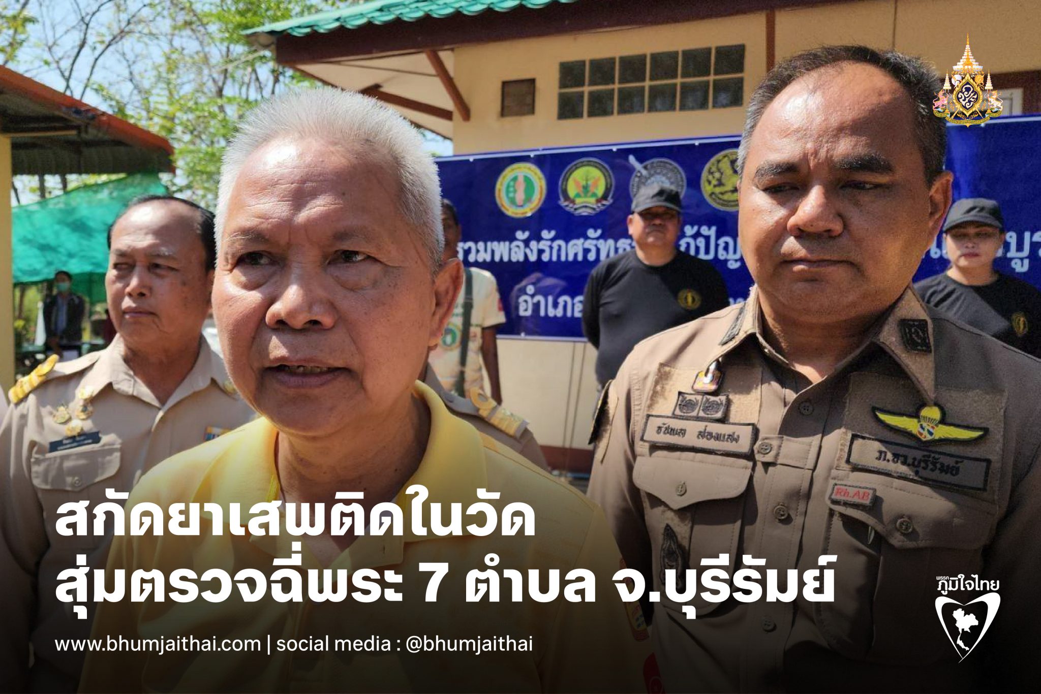 "โสภณ" นำทีมบุรีรัมย์ สุ่มตรวจฉี่ เจ้าอาวาส-พระลูกวัด 7 ตำบล สกัดยาเสพติดระบาดในวัด พร้อมเดินหน้าค้นหาผู้เสพบำบัด