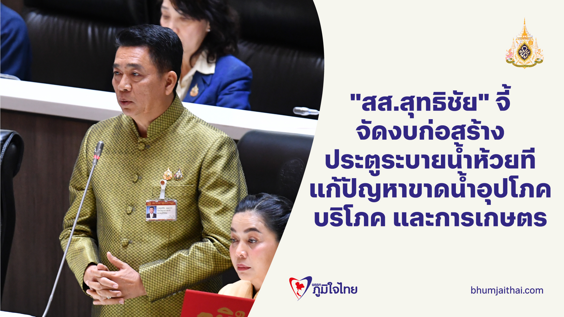 "สส.สุทธิชัย" จี้ จัดงบก่อสร้าง ประตูระบายน้ำห้วยที แก้ปัญหาขาดน้ำอุปโภค บริโภค และการเกษตร