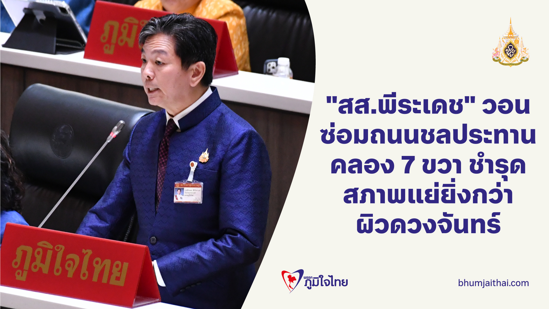 สภาพแย่กว่าผิวดวงจันทร์! "สส.พีระเดช" วอน รมว.เกษตรฯ จัดงบซ่อมถนนเลียบคันคลองชลประทานชำรุด พ้อ หน่วยงาราชการไม่ให้ความสำคัญสภา หารือตั้งแต่ปี 66 ยังไม่ได้รับการแก้ไข