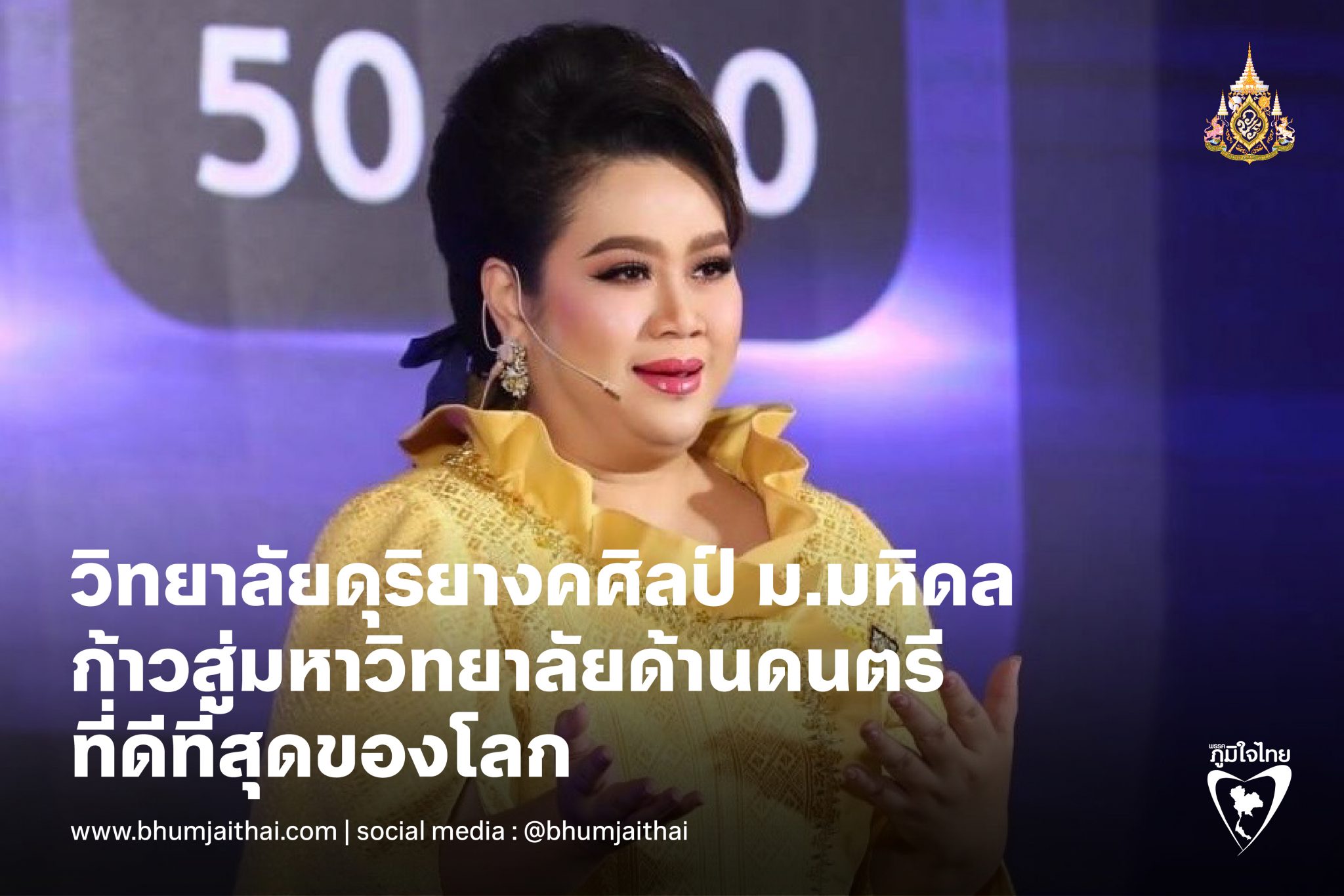 สร้างประวัติศาสตร์ใหม่! “ศุภมาส” เผยวิทยาลัยดุริยางคศิลป์ ม.มหิดล ก้าวสู่มหาวิทยาลัยด้านดนตรีที่ดีที่สุดของโลก อันดับที่ 28 จาก QS World University Rankings by Subject 2025 ตอกย้ำศักยภาพด้านดนตรี-ศิลปะการแสดงของไทยในระดับสากล