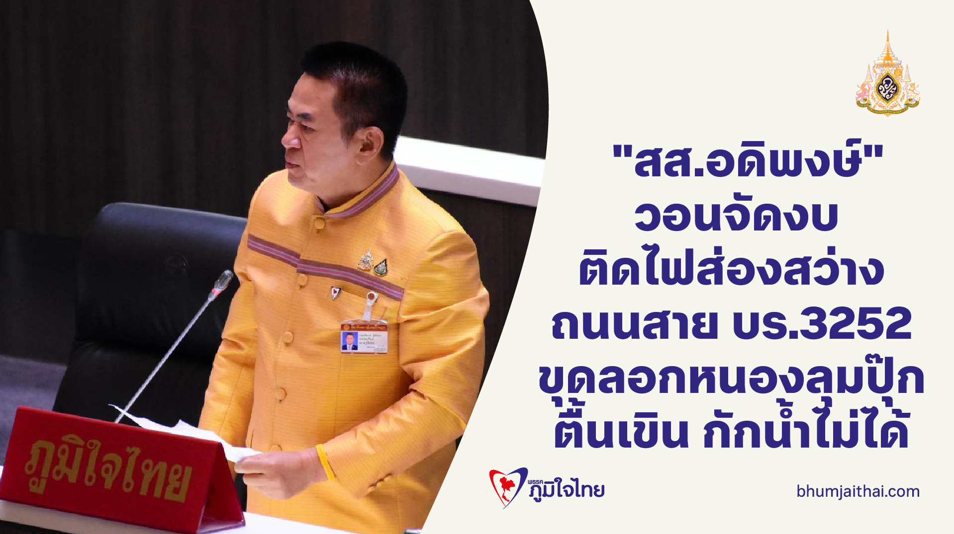 "สส.อดิพงษ์" วอน จัดงบประมาณติดตั้งไฟส่องสว่าง ถนนสายบร.3252 (บ้านตาเสา-บ้านละเบิก) ขุดลอก - พัฒนาหนองลุมปุ๊ก เพื่อกักเก็บน้ำ ให้เพียงพอต่อความต้องการของ ปชช.