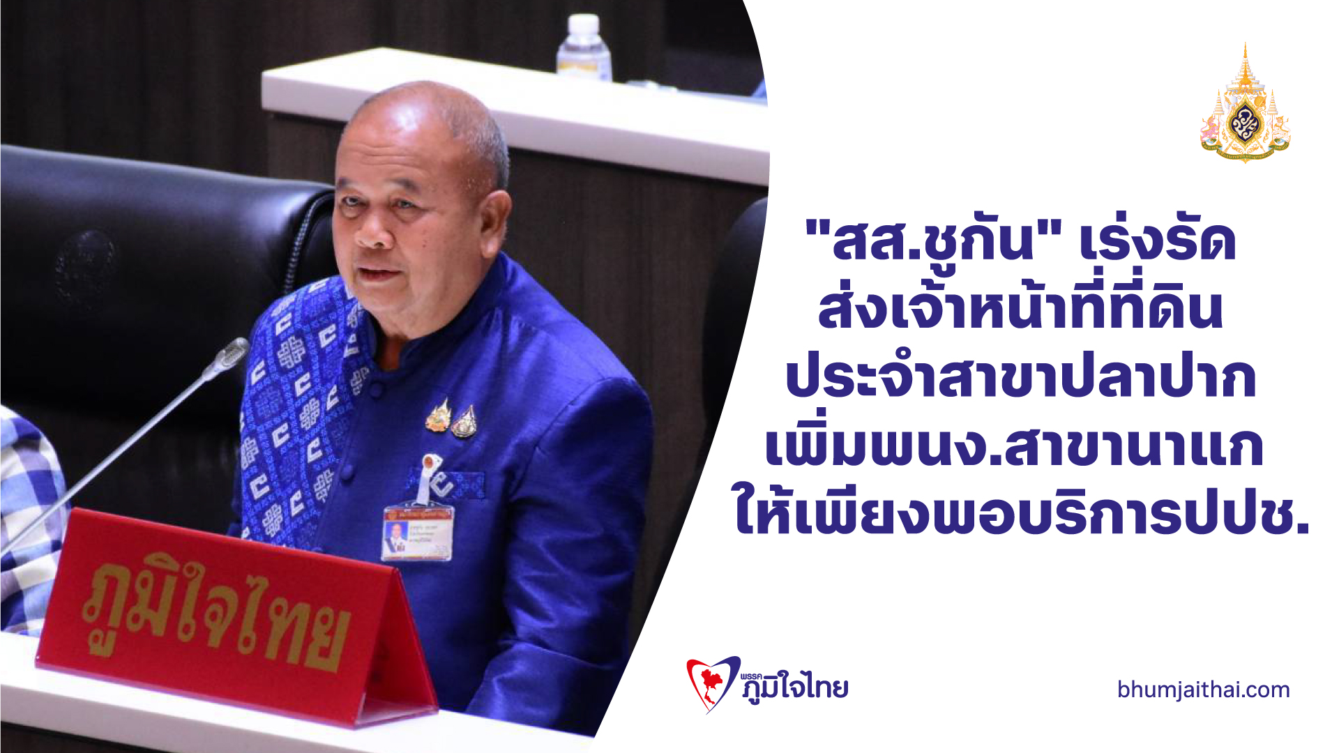 "สส.ชกัน" เร่งรัด ส่งเจ้าหน้าที่ที่ดิน ประจำสาขาปลาปาก เพิ่มพนง.สาขานาแก ให้เพียงพอบริการปปช.