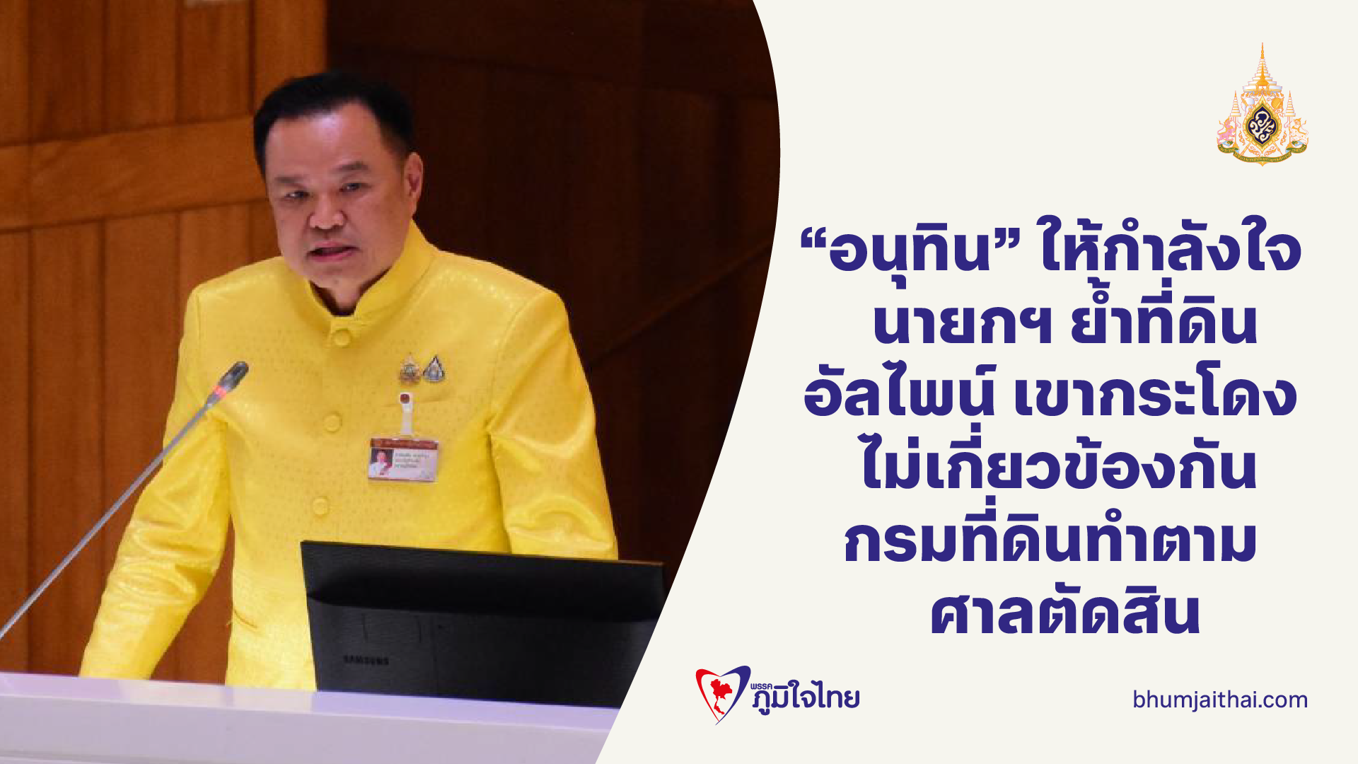 "อนุทิน" ให้กำลังใจ นายกฯ ย้ำที่ดิน อัลไพน์ เขากระโดง ไม่เกี่ยวข้องกัน กรมที่ดินทำตาม ศาลตัดสิน
