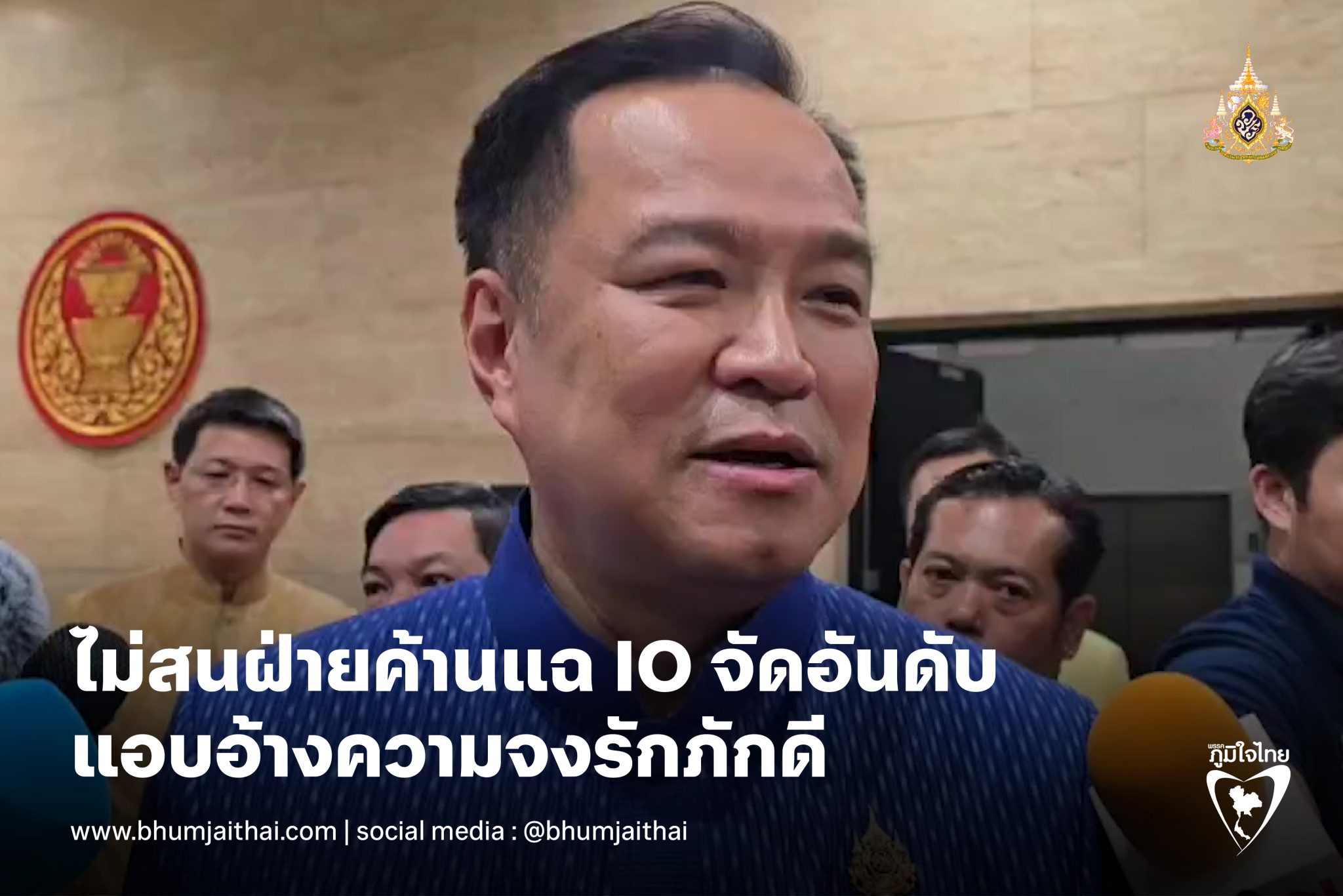 "อนุทิน" ไม่สนฝ่ายค้านแฉ IO จัดอันดับแอบอ้างความจงรักภักดี บอกเรื่องนี้ไม่จำเป็นต้องโฆษณา หลายคนทราบดีว่าตนสีอะไร พรรคของผมมีสีอะไร