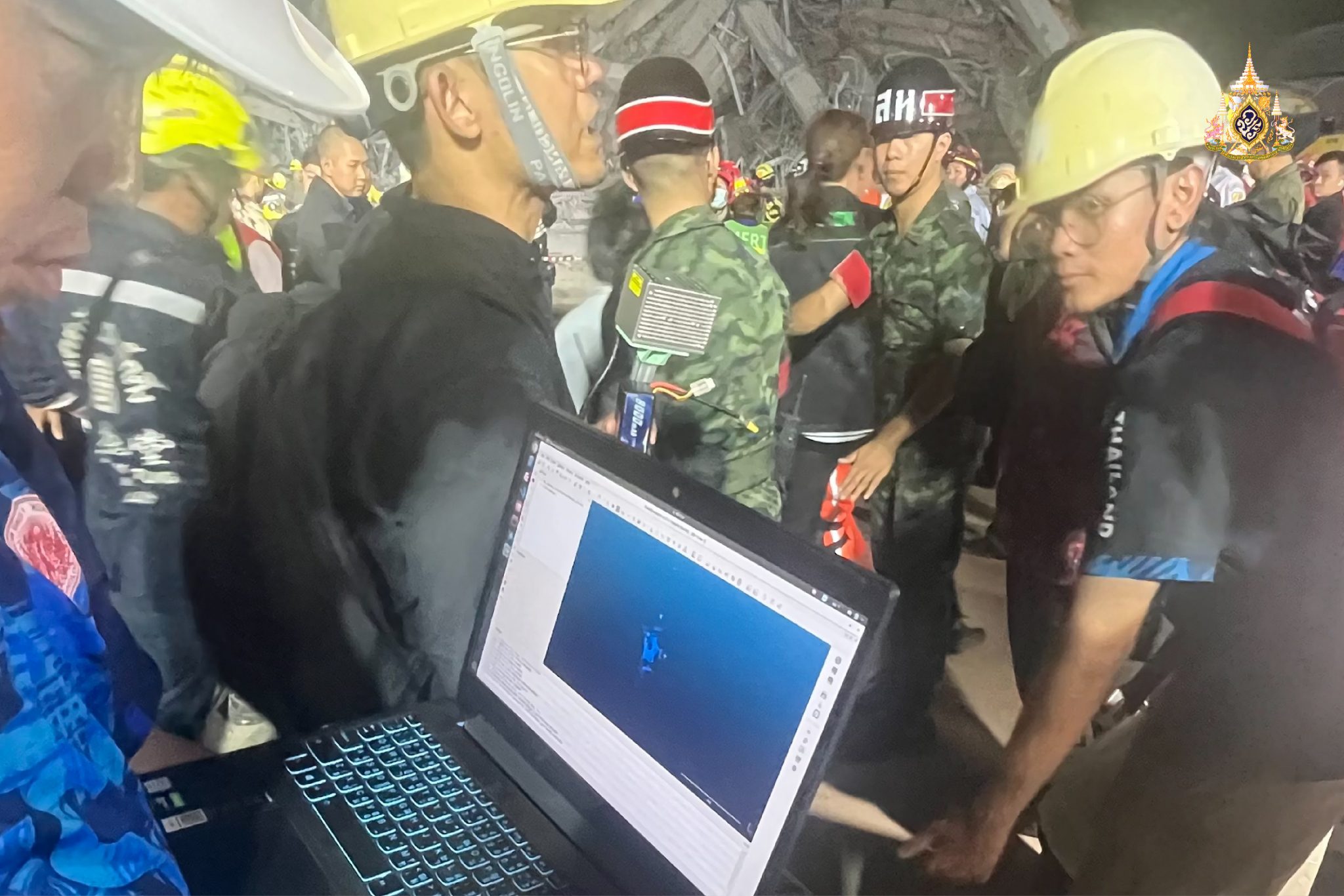 น.ส.ศุภมาส กล่าวอีกว่า นอกจากนี้ กระทรวง อว.จะนำอากาศยานไร้คนขับ (โดรน) จำนวน 2 ตัว เพื่อสนับสนุนภารกิจการสำรวจในครั้งนี้ด้วย โดยอากาศยานไร้คนขับ DJI Mavic 3 Enterprise ซึ่งเป็นโดรนที่มีศักยภาพสูง มีกล้องที่ให้ความละเอียดสูงและฟังก์ชันการซูมระยะไกล เพื่อใช้ในการสำรวจขอบเขตของความเสียหายจากแผ่นดินไหว ข้อมูลที่ได้จากการสำรวจจะถูกนำไปใช้วิเคราะห์เพื่อค้นหาผู้ประสบภัย และสนับสนุนหน่วยงานที่เกี่ยวข้องให้สามารถเข้าถึงพื้นที่ที่ได้รับผลกระทบได้อย่างแม่นยำและรวดเร็ว อีกทั้งยังเป็นข้อมูลสำคัญในการประเมินความเสียหายของโครงสร้างอาคาร รวมถึงแนวทางการบูรณะและซ่อมแซมต่อไป
