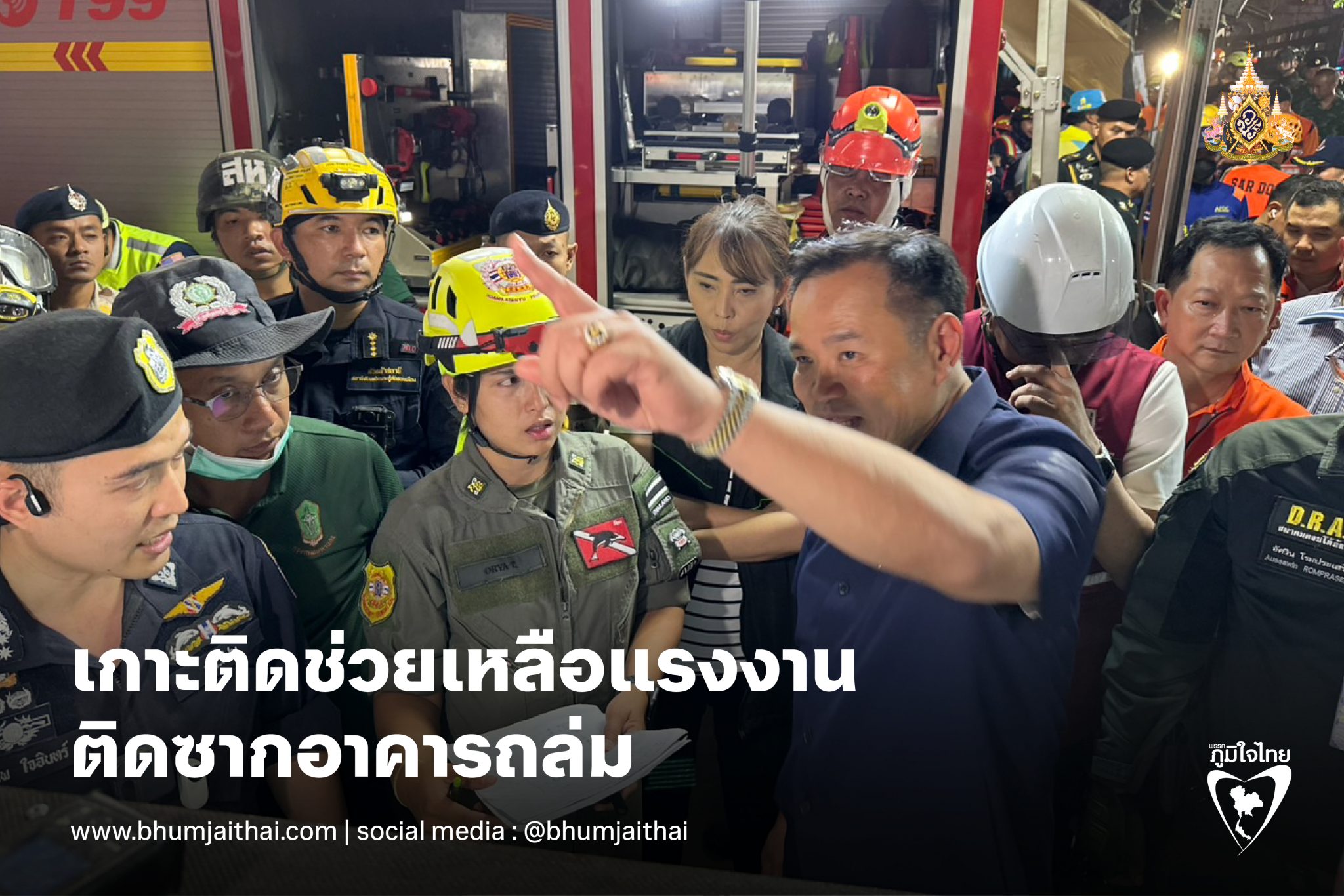 เวลา 19.30 น. 28 มีนาคม 2568 ผู้สื่อข่าวรายงานว่า นายอนุทิน ชาญวีรกูล รองนายกรัฐมนตรี และรัฐมนตรีว่าการกระทรวงมหาดไทย ยังปฏิบัติหน้าที่ในพื้นที่ ซึ่งมีเหตุการณ์อาคารถล่มจากแผ่นดินไหว โดยนายอนุทิน ได้เกาะติดสถานการณ์อย่างใกล้ชิด ทั้งนี้ นายอนุทิน ได้หารือกับทีมกู้ภัย และเจ้าหน้าที่ โดยระบุว่าพร้อมสนับสนุนการปฏิบัติงานเต็มที่ สามารถประสานขอการสนับสนุนเพิ่มเติมได้ทันที นอกจากนั้น นายอนุทิน ยังให้กำลังใจเจ้าหน้าที่ ขอให้ช่วยชีวิตคนให้ได้มากที่สุด
