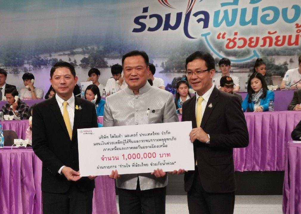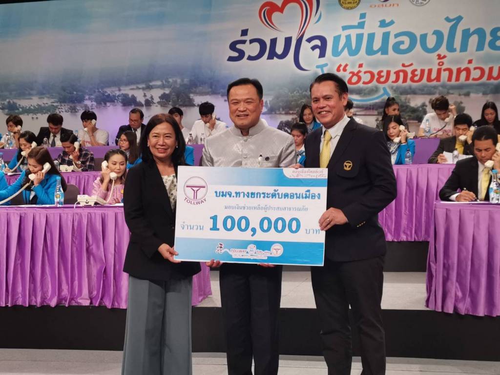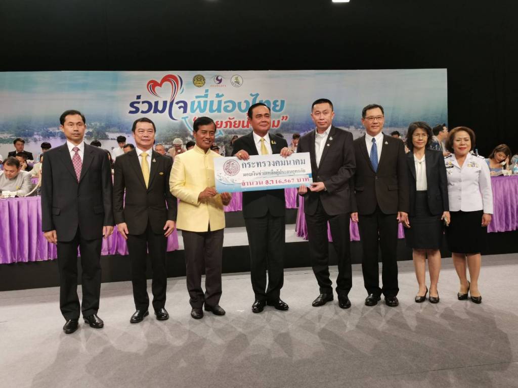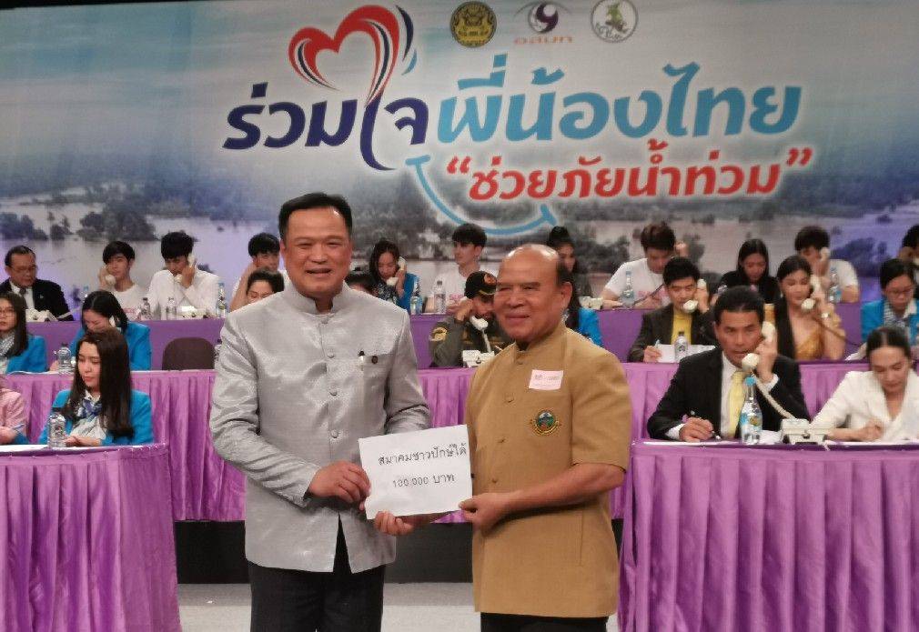 17 กันยายน 2562 เวลา 22:10"อนุทิน" นำ"พรรคภูมิใจไทย"เข้าร่วมงาน “ร่วมใจ พี่น้องไทย ช่วยภัยน้ำท่วม” มอบ 5.6 ล้านบาท"หัวหน้าพรรคภูมิใจไทย" นำทีม "ภูมิใจไทย" เข้าร่วมงาน “ร่วมใจ พี่น้องไทย ช่วยภัยน้ำท่วม” พร้อมมอบเงินช่วยเหลือผู้ประสบภัยน้ำท่วม 5.6 ล้าน จากสมาชิกสภาผู้แทนราษฎรและรัฐมนตรีของพรรคภูมิใจไทย ทั้ง 56 คน โดยรับสายโทรศัพท์บริจาคด้วยตัวเอง ที่อาคารปฏิบัติการวิทยุโทรทัศน์ บริษัท อสมท จำกัด (มหาชน) มีการจัดรายการพิเศษ "ร่วมใจ พี่น้องไทย ช่วยภัยน้ำท่วม" ดำเนินการโดยสำนักนายกรัฐมนตรี อสมท. และกรมประชาสัมพันธ์ ซึ่ง พล.อ.ประยุทธ์ จันทร์โอชา นายกรัฐมนตรี และรมว.กลาโหม นำคณะรัฐมนตรี (ครม.) ดารา นักร้อง นักแสดง รวมถึง นายบิณฑ์ บรรลือฤทธิ์ นักแสดงชื่อดังและอาสากู้ภัย ร่วมรับมอบเงินบริจาคช่วยเหลือผู้ประสบอุทกภัย ผ่านทางโทรศัพท์ มีผู้บริจาคจำนวนมาก โดยระหว่างรายการ นายอนุทิน ชาญวีรกูล รองนายกรัฐมนตรี และรัฐมนตรีว่าการกระทรวงสาธารณสุข หัวหน้าพรรคภูมิใจไทย, นายศักดิ์สยาม ชิดชอบ รัฐมนตรีว่าการกระทรวงคมนาคม เลขาธิการพรรคภูมิใจไทย ได้มอบเงินจำนวน 5.6 ล้านบาท แก่นายกรัฐมนตรี ไว้ช่วยเหลือผู้ประสบภัยน้ำท่วม นายอนุทิน เปิดเผยว่า เงินจำนวนดังกล่าวมาจาก ส.ส.และรัฐมนตรีของพรรคภูมิใจไทยทั้ง 56 คนที่แบ่งเงินเดือน 1 เดือน มามอบแก่ผู้ประสบภัย เมื่อประชาชนทุกร้อน ก็ต้องหาทางช่วยกัน จึงเกิดไอเดีย กระทั่งเกิดการร่วมมือดังกล่าวขึ้น ขอให้ผู้ประสบภัย มีกำลังใจ และอยากให้รู้ไว้ว่าคนไทย ไม่ทิ้งกัน และขอขอบคุณทุกกำลังใจ ทุกกำลังแรงกาย และทุกกำลังทรัพย์ที่ส่งเข้ามา ทั้งนี้ นายอนุทิน นายศักดิ์สยาม นายพิพัฒน์ รัชกิจประการ รัฐมนตรีว่าการกระทรวงการท่องเที่ยวและกีฬา, นายทรงศักดิ์ ทองศรี รัฐมนตรีช่วยว่าการกระทรวงมหาดไทย และนางสาวไตรสุรี ไตรสรณกุล รองโฆษกประจำสำนักนายกรัฐมนตรี ร่วมรับโทรศัพท์จากผู้บริจาคทั่วประเทศไทยในครั้งนี้ด้วย แชร์บทความนี้:
