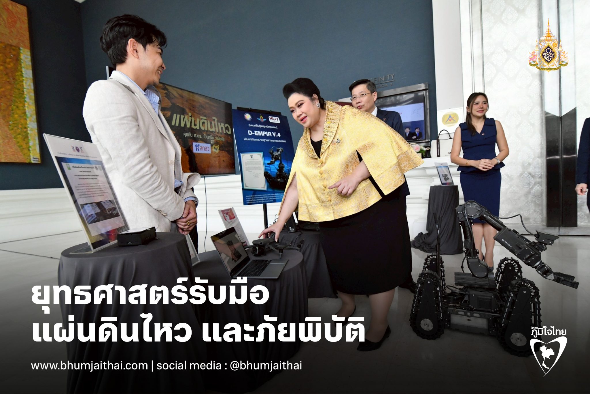 3.) “หุ่นตรวจการและเก็บกู้วัตถุระเบิด รุ่น D-EMPIR V.4” ถูกออกแบบสำหรับการปฏิบัติงานเก็บกู้วัตถุระเบิด และสามารถซ่อมบำรุงได้ง่ายเมื่อเกิดความเสียหาย โดยในช่วงสถานการณ์วิกฤตหุ่นยนต์ D-EMPIR V.4 ได้ถูกนำมาลงพื้นที่เพื่อเข้าช่วยเหลือผู้ประสบภัยฯ ณ ถ.กำแพงเพชร เขตจตุจักร กทม. ที่มีผู้บาดเจ็บและสูญหายเป็นจำนวนมาก เนื่องด้วยหุ่นยนต์มีขนาดเล็ก มีความคล่องตัวสูง มีการติดตั้งแขนกลพิเศษ สามารถเข้าพื้นที่แคบได้โดยใช้แขนกลหยิบจับสิ่งของ และปีนป่ายทางต่างระดับได้อย่างคล่องตัว พัฒนาโดย มหาวิทยาลัยเทคโนโลยีมหานคร และสถาบันเทคโนโลยีป้องกันประเทศ (DTI)