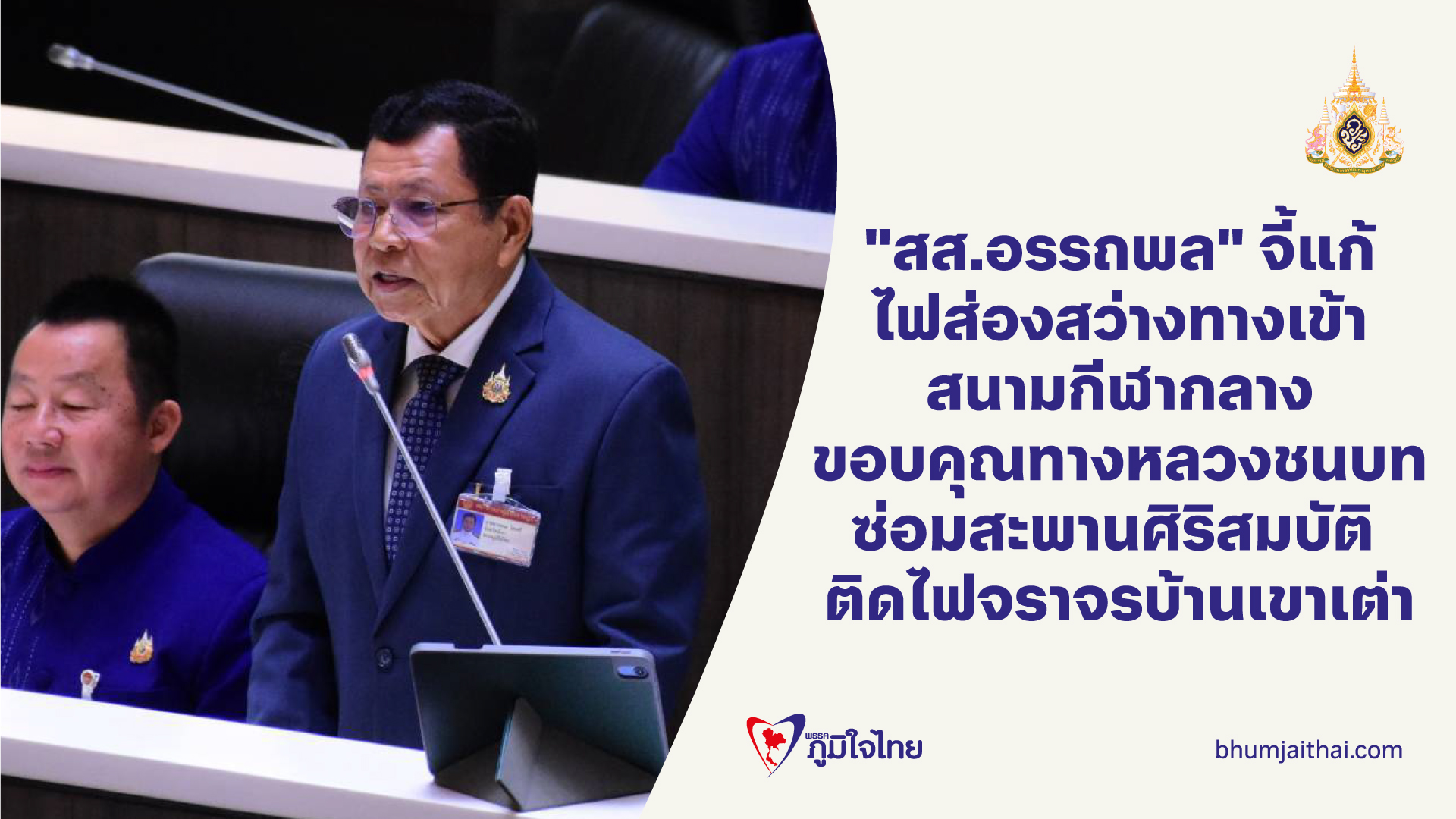 "สส.อรรถพล" หารือสภาฯ เร่งแก้ปัญหาไฟฟ้าส่องสว่าง เส้นทางเข้าสนามกีฬากลาง ขอบคุณทางหลวงชนบทซ่อมสะพานศิริสมบัติ ติดไฟจราจรสามแยกบ้านเขาเต่า