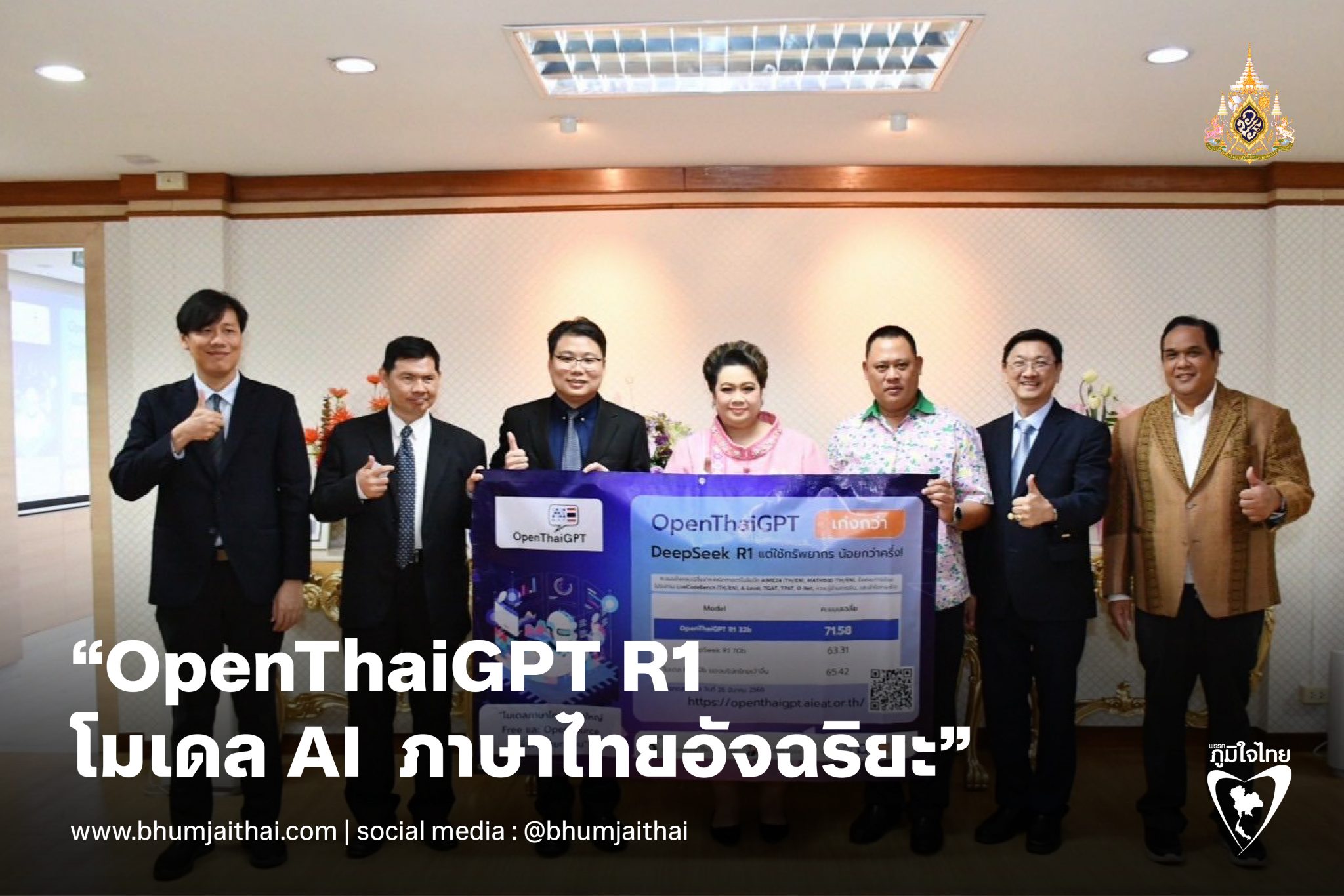 เมื่อวันที่ 4 เม.ย. 2568 น.ส.ศุภมาส อิศรภักดี รมว.การอุดมศึกษา วิทยาศาสตร์ วิจัยและนวัตกรรม (อว.) ร่วมหารือกับทีม “OpenThaiGPT R1” ถึงผลสำเร็จโครงการ “OpenThaiGPT R1” โมเดล AI ภาษาไทยขนาดใหญ่ ที่มีความสามารถโดดเด่นด้านการวิเคราะห์และคิดเชิงเหตุผล (Reasoning) เทียบชั้นโมเดลระดับโลก แต่ใช้ทรัพยากรน้อยกว่า นำทีมโดย ดร.กอบกฤตย์ วิริยะยุทธกร และ ดร.สุเมธ ยืนยง จากสมาคมผู้ประกอบการปัญญาประดิษฐ์ประเทศไทย (AIEAT) และ บริษัท ไอแอพพ์เทคโนโลยี จำกัด (iApp Technology) ซึ่งได้รับทุนวิจัยสนับสนุนจากหน่วยบริหารและจัดการทุนด้านการเพิ่มความสามารถในการแข่งขันของประเทศ (บพข.) กองทุนส่งเสริมวิทยาศาสตร์ วิจัยและนวัตกรรม โดยมี ดร.พันธุ์เพิ่มศักดิ์ อารุณี รักษาการในตำแหน่งที่ปรึกษาด้านการพัฒนาอุดมศึกษา วิทยาศาสตร์ วิจัยและนวัตกรรม รศ.ดร.ธงชัย สุวรรณสิชณน์ ผู้อำนวยการ บพข. และ ผศ.ดร.ประมา ศาสตระรุจิ รักษาการผู้อำนวยการสำนักบริหารเทคโนโลยีสารสนเทศเพื่อพัฒนาการศึกษา (สบทศ.) เข้าร่วม ที่ห้องประชุมรัฐมนตรี ชั้น 2 อาคารพระจอมเกล้า สำนักงานปลัดกระทรวง อว. (โยธี)