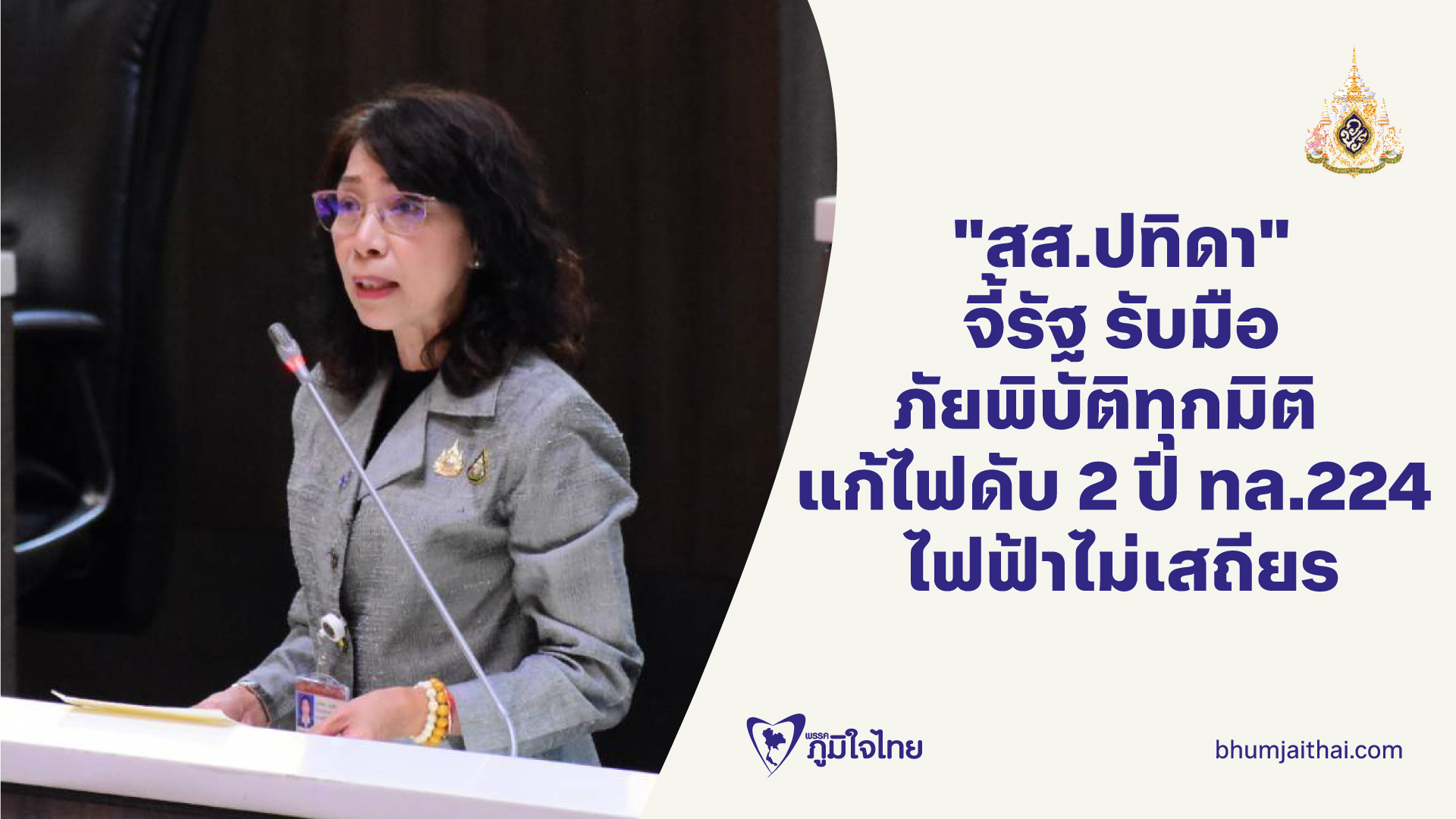 "สส.ปทิดา" จี้รัฐ รับมือ ภัยพิบัติทุกมิติ แก้ไฟดับ 2 ปี ทล.224 ไฟฟ้าไม่เสถียร