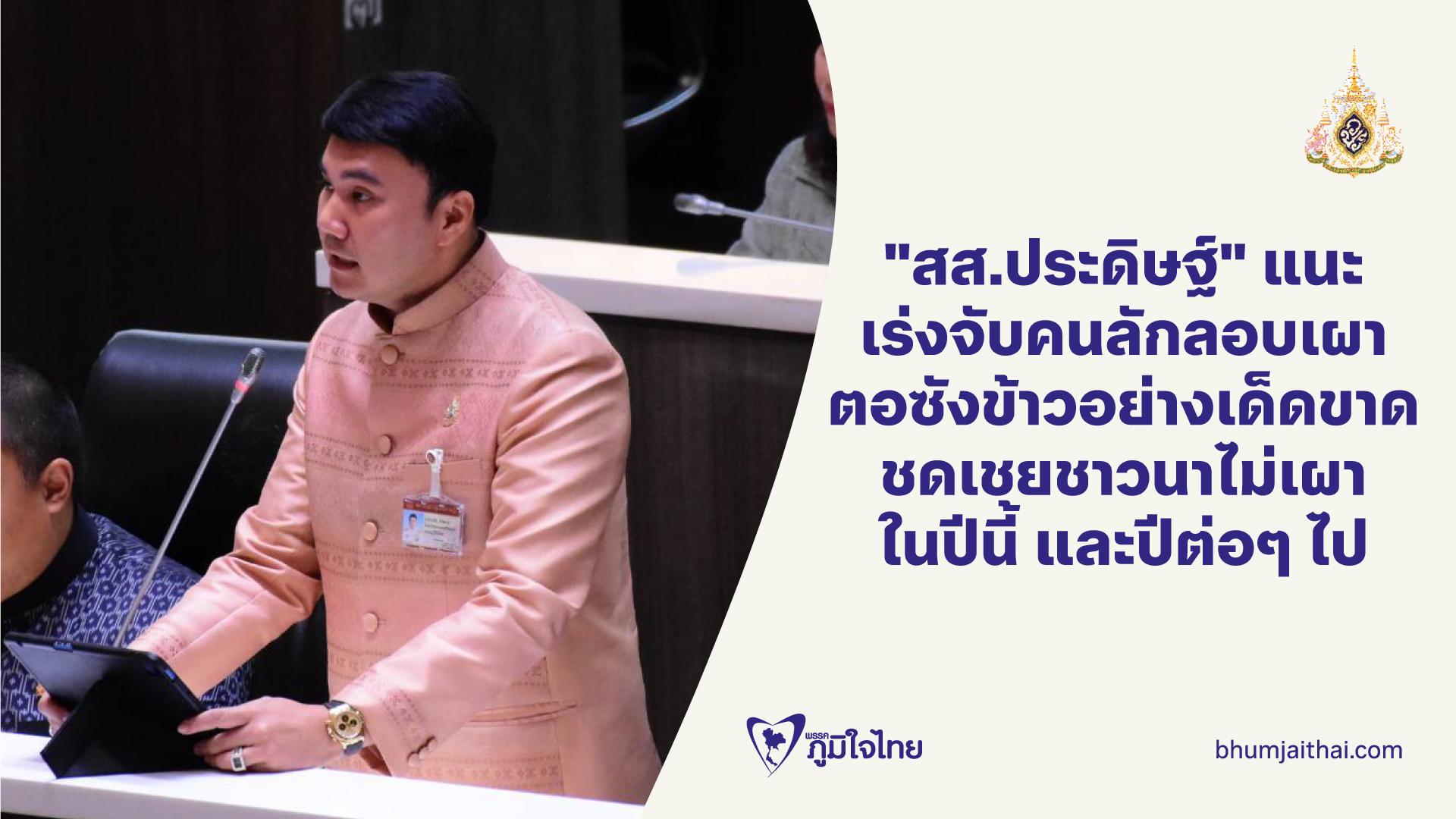 "สส.ประดิษฐ์" แนะ เร่งจับคนลักลอบเผา ตอซังข้าวอย่างเด็ดขาด ชดเชยชาวนาไม่เผาในปีนี้ และปีต่อๆไป