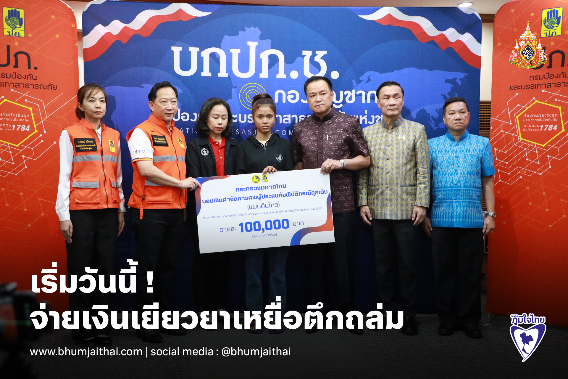 วันนี้ (18 เม.ย. 68) เวลา 10.30 น. ที่กรมป้องกันและบรรเทาสาธารณภัย นายอนุทิน ชาญวีรกูล รองนายกรัฐมนตรีและรมว.มหาดไทย ในฐานะผู้บัญชาการป้องกันและบรรเทาสาธารณภัยแห่งชาติ เป็นประธานในการมอบเงินค่าจัดการศพผู้ประสบภัยพิบัติกรณีฉุกเฉิน (แผ่นดินไหว) เมื่อวันที่ 28 มี.ค. 68 จำนวน 100,000 บาท ให้แก่ น.ส.ชลิดา ทองพุฒ ทายาทของ นายชัชวาล ทองพุฒ ชาวพิษณุโลก ซึ่งเป็นผู้เสียชีวิตในเหตุตึกถล่มจากแผ่นดินไหว และทายาทประสงค์จะรับเงินค่าจัดการศพเพื่อดำเนินการที่กรุงเทพมหานคร