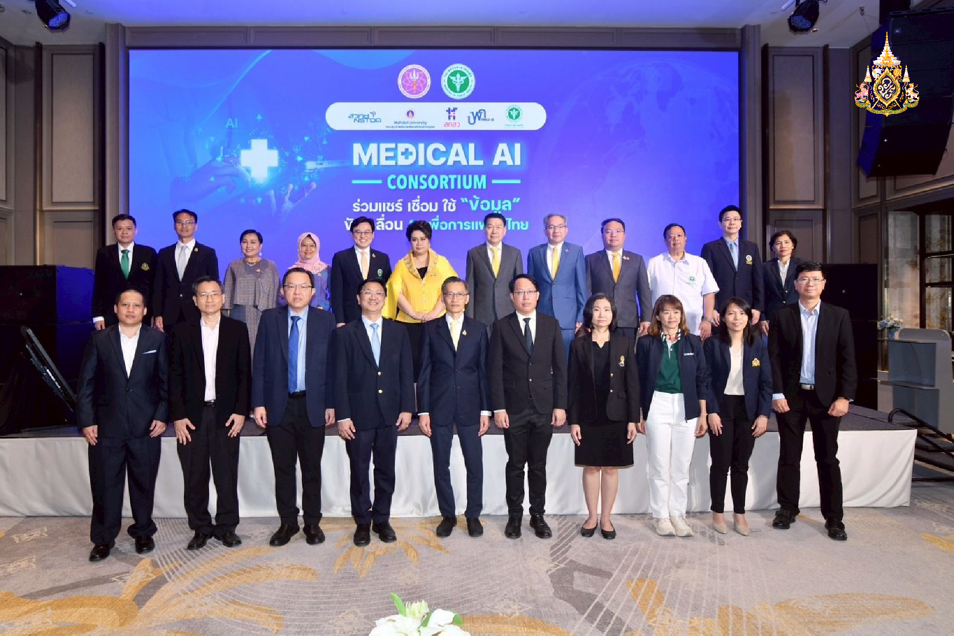 เมื่อวันที่ 21 เม.ย. 2568 น.ส.ศุภมาส อิศรภักดี รัฐมนตรีว่าการกระทรวงการอุดมศึกษา วิทยาศาสตร์ วิจัยและนวัตกรรม (อว.) เป็นประธานเปิดงานสัมมนาเชิงวิชาการ Medical AI Consortium: ร่วมแชร์ เชื่อม ใช้ “ข้อมูล” ขับเคลื่อน AI เพื่อการแพทย์ไทย และเป็นสักขีพยานในการประกาศความร่วมมือกับพันธมิตรทางการแพทย์ ซึ่งประกอบด้วย กรมการแพทย์ กระทรวงสาธารณสุข และคณะแพทยศาสตร์ โรงพยาบาลรามาธิบดี มหาวิทยาลัยมหิดล พร้อมด้วยภาคีเครือข่าย Medical AI Consortium ซึ่งภายในงานมีการเปิดตัว “แพลตฟอร์มข้อมูลกลางทางการแพทย์ (Medical AI Data Platform)” อย่างเป็นทางการ ที่มุ่งสร้างโครงสร้างพื้นฐานและระบบนิเวศข้อมูลที่เข้มแข็งรองรับการพัฒนานวัตกรรม AI ทางการแพทย์เพื่อคนไทย โดยมี พญ.เพชรดาว โต๊ะมีนา ที่ปรึกษารัฐมนตรีว่าการกระทรวง อว. , ผศ.(พิเศษ) นายแพทย์ธนินทร์ เวชชาภินันท์ รองอธิบดีกรมการแพทย์ กระทรวงสาธารณสุข, ศ.ดร.ชูกิจ ลิมปิจำนงค์ ผู้อำนวยการสำนักงานพัฒนาวิทยาศาสตร์และเทคโนโลยีแห่งชาติ (สวทช.), ศ.ดร.สมปอง คล้ายหนองสรวง ผู้อำนวยการสำนักงานคณะกรรมการส่งเสริม วิทยาศาสตร์ วิจัยและนวัตกรรม (สกสว.), ศ.นพ.ปิยะมิตร ศรีธรา อธิการบดีมหาวิทยาลัยมหิดล, ดร.ชัย วุฒิวิวัฒน์ชัย ผู้อำนวยการเนคเทค สวทช., ดร.ณิรวัฒน์ ธรรมจักร์ ผู้อำนวยการหน่วยบริหารและจัดการทุนด้านการพัฒนากำลังคนและทุนด้านการพัฒนาสถาบันอุดมศึกษา การวิจัยและการสร้างนวัตกรรม (บพค.) และบุคลากรหน่วยงานที่เกี่ยวข้องเข้าร่วม ณ โรงแรมแกรนด์ เซ็นเตอร์พอยต์ ลุมพินี กทม.