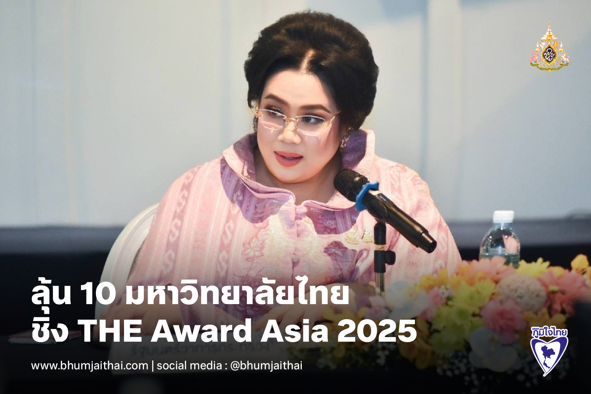 “ศุภมาส” เผย 10 มหาวิทยาลัยไทยได้รับเสนอชื่อเข้าชิงรางวัล THE Award Asia 2025 มหาวิทยาลัยที่มีโครงการโดดเด่นและเป็นผู้นำแต่ละสาขาของภูมิภาคเอเชีย จำนวนสูงสุดในภูมิภาคเอเชียเทียบเท่าสิงคโปร์ ชวนร่วมลุ้นประกาศผล 22 เม.ย. นี้