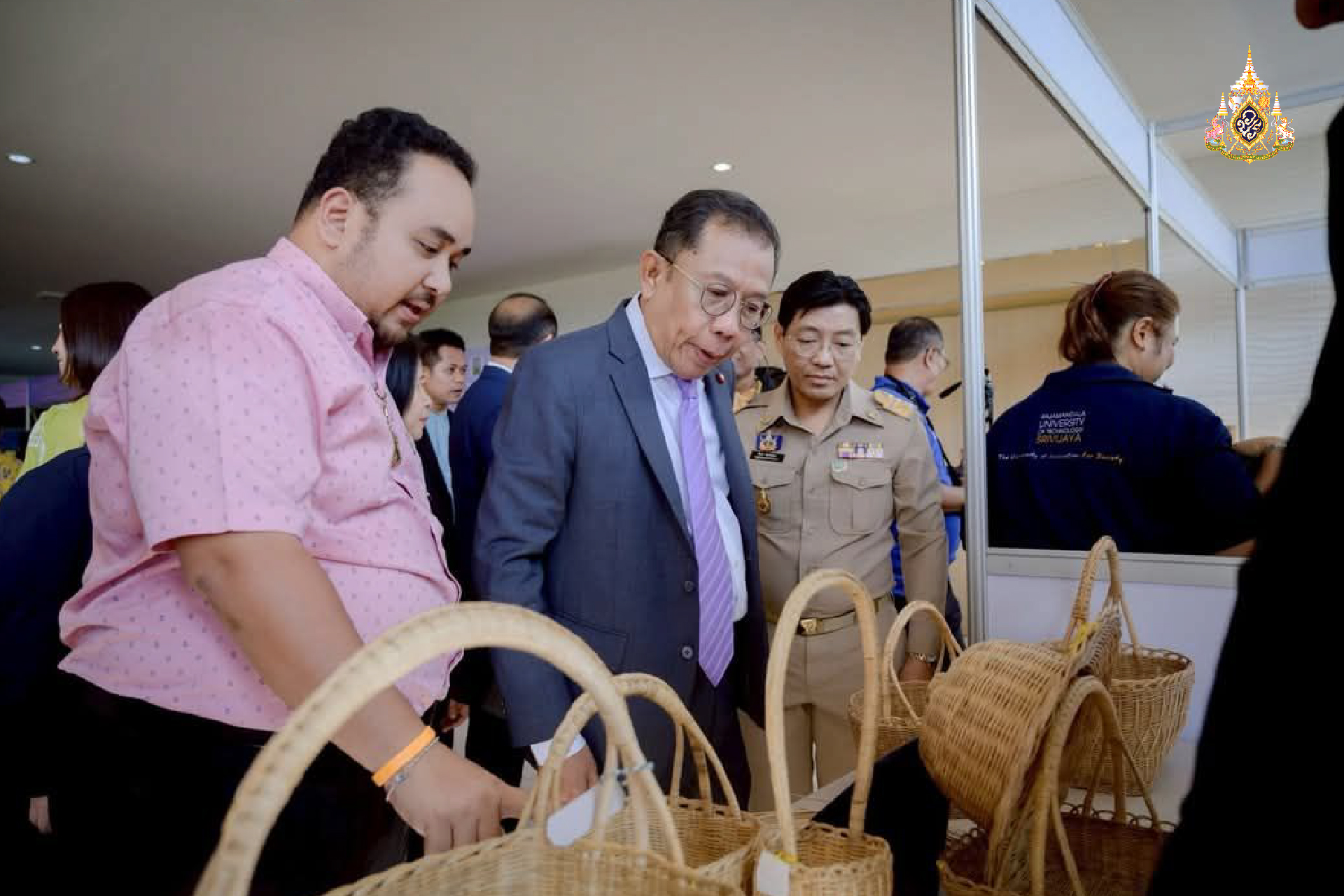 นอกจากนี้ มทร.ศรีวิชัย ยังนำเสนอนิทรรศการ คลินิกเทคโนโลยี มทร.ศรีวิชัย นครศรีธรรมราช เทคโนโลยีการผลิตปุ๋ย เทคโนโลยีการแปรรูปน้ำผึ้ง เทคโนโลยีการแปรรูปเนื้อสัตว์ คลินิกเทคโนโลยี มทร.ศรีวิชัย สงขลา ผลิตภัณฑ์เห็ดแครง ผลิตภัณฑ์จากเตยปาหนัน เทคโนโลยีผลิตภัณฑ์จากผ้ามัดย้อม และผ้า Ecoprint เทคโนโลยีผ้ามัดย้อมพิมพ์ลาย คลินิกเทคโนโลยี มทร. ศรีวิชัย ตรัง ชุดเพาะเลี้ยงสาหร่ายขนนก ชุดวัดคุณภาพน้ำโดยระบบสามารถวัดค่าได้แก่ ค่าความเค็มในน้ำอุณหภูมิ ค่าความเป็นกรด-ด่าง ค่าความเข้มแสง ผลิตภัณฑ์แปรรูปจากสาหร่ายขนนก ได้แก่ ข้าวสาหร่าย – ผงโรยข้าว สบู่สาหร่าย เครื่องดื่มสาหร่ายผลิตภัณฑ์กุ้งแห้งลดเค็มจากโครงการการใช้เทคโนโลยีพัฒนาและยกระดับคุณภาพผลิตภัณฑ์กุ้งแห้งลดเค็มชุมชนแปรรูปอาหารทะเล ตำบลตะเสะ อำเภอหาดสำราญ จังหวัดตรัง และมีการส่งมอบ “เครื่องลดความชื้นน้ำผึ้งด้วยระบบสุญญากาศ” ผลผลิตของ “โครงการการพัฒนาเทคโนโลยีและนวัตกรรมเพื่อส่งเสริมการท่องเที่ยว ตำบล ปากบาง อำเภอเทพา จังหวัดสงขลา” ภายใต้ “โครงการยุวชนอาสา ประจำปี พ.ศ. 2568” ให้แก่กลุ่มวิสาหกิจชุมชนกลุ่มเลี้ยงผึ้งชันโรงบ้านเกาะแลหนังฟาร์ม ตำบลปากบาง อำเภอเทพา จังหวัดสงขลา