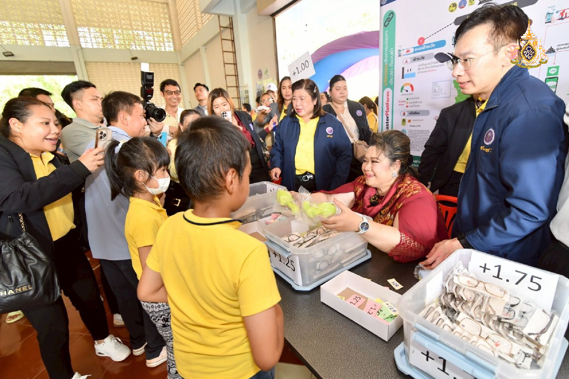 จากนั้น น.ส.ศุภมาส ได้มอบนวัตกรรมส่งเสริมอาชีพให้แก่ผู้นำชุมชนและวิสาหกิจชุมชนจากงานวิจัยของมหาวิทยาลัยนครพนม จำนวน 2 รายการ ประกอบด้วย เครื่องลดมวลขยะอินทรีย์ 1 ชุด และไก่สายพันธุ์ศรีโครตบูรณ์ จำนวน 50 ชุด และมอบถุงบำรุงชีพให้แก่ตัวแทนประชาชน จำนวน 50 ถุง แว่นสายตา จำนวน 400 ชิ้น รวมทั้งมอบของที่ระลึกจากหน่วยงานในสังกัดกระทรวง อว. จำนวน 400 ชิ้น ก่อนที่จะพบปะและพูดคุยกับประชาชนในพื้นที่