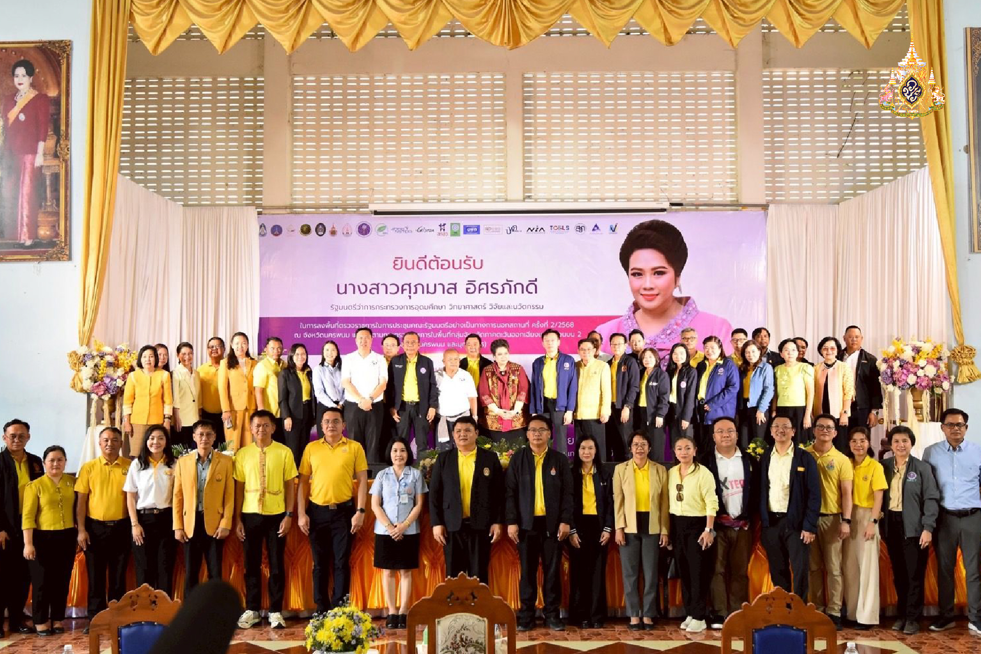 เมื่อวันที่ 27 เม.ย. 2568 น.ส.ศุภมาส อิศรภักดี รัฐมนตรีว่าการกระทรวงการอุดมศึกษา วิทยาศาสตร์ วิจัยและนวัตกรรม (อว.) พร้อมด้วย นายศุภชัย ใจสมุทร ผู้ช่วย รมว.กระทรวง อว., ศ.ดร.ศุภชัย ปทุมนากุล ปลัดกระทรวง อว. และผู้บริหารกระทรวง อว. ลงพื้นที่จังหวัดนครพนม ก่อนการประชุมคณะรัฐมนตรีอย่างเป็นทางการนอกสถานที่ (ครม.สัญจร) กลุ่มจังหวัดภาคตะวันออกเฉียงเหนือตอนบน 2 (นครพนม สกลนคร มุกดาหาร) โดยช่วงบ่ายได้เดินทางไปที่โรงเรียนคำเตยอุปถัมภ์ ตำบลคำเตย อำเภอเมืองนครพนม เพื่อมอบนโยบาย “การขับเคลื่อนงานด้านอุดมศึกษา วิทยาศาสตร์ วิจัยและนวัตกรรม (อววน.) สนับสนุนการพัฒนาพื้นที่กลุ่มจังหวัดภาคตะวันออกเฉียงเหนือตอนบน 2” โดยมีนายแพทย์อลงกต มณีกาศ สส.จังหวัดนครพนม เขต 3 พรรคภูมิใจไทย หรือหมอขวัญใจคนยาก และนายชูกัน กุลวงษา สส.จังหวัดนครพนม เขต 4 พรรคภูมิใจไทย หรือนักการเมืองคนยาก มาต้อนรับ โดยบรรยากาศเป็นไปอย่างคึกคัก มีประชาชนจากอำเภอบ้านแพง ท่าอุเทน โพนสวรรค์ และอำเภอเมืองนครพนม เดินทางมาร่วมงานกว่า 500 คน