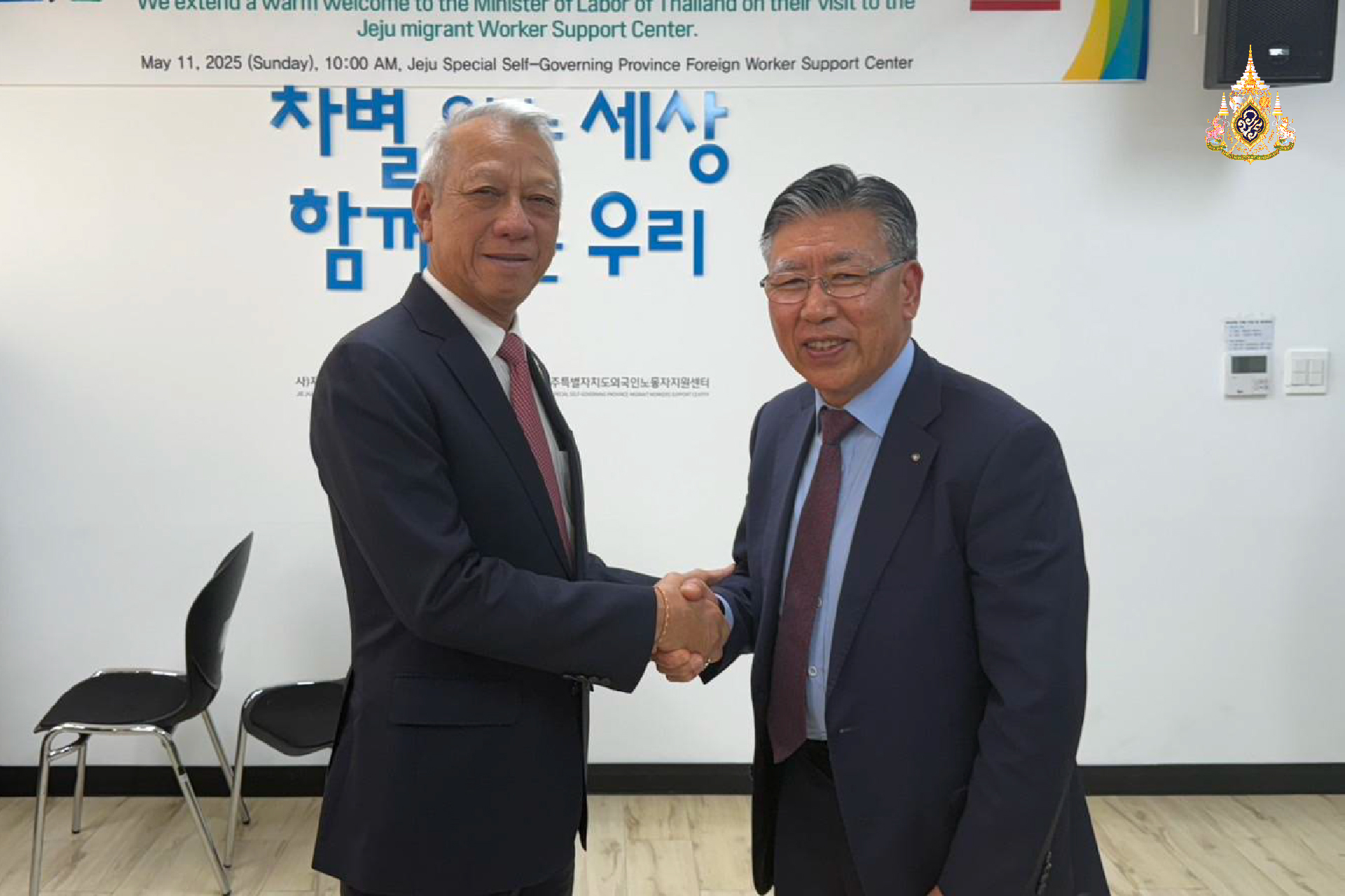 วันที่ 11 พฤษภาคม 2568 – เกาะเชจู สาธารณรัฐเกาหลีนายพิพัฒน์ รัชกิจประการ รัฐมนตรีว่าการกระทรวงแรงงาน พร้อมด้วยนายบุญสงค์ ทัพชัยยุทธ์ ปลัดกระทรวงแรงงาน นายศักดินาถ สนธิศักดิ์โยธิน ผู้ช่วยปลัดกระทรวงแรงงาน