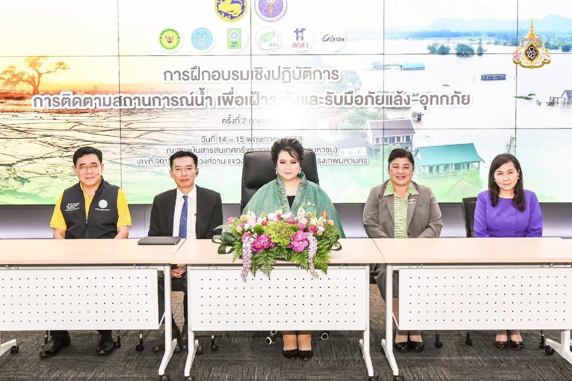 เมื่อวันที่ 14 พ.ค. 2568 นางสาวศุภมาส อิศรภักดี รัฐมนตรีว่าการกระทรวงการอุดมศึกษา วิทยาศาสตร์ วิจัยและนวัตกรรม (อว.) เป็นประธานเปิด "โครงการฝึกอบรมเชิงปฏิบัติการติดตามสถานการณ์น้ำ เพื่อเฝ้าระวังและรับมือภัยแล้ง-อุทกภัย" ครั้งที่ 2 สำหรับพื้นที่ภาคกลาง ซึ่งจัดขึ้นโดยกระทรวง อว. โดยสถาบันสารสนเทศทรัพยากรน้ำ (องค์การมหาชน) หรือ สสน. และ สำนักงานพัฒนาเทคโนโลยีอวกาศและภูมิสารสนเทศ (องค์การมหาชน) หรือ GISTDA ระหว่างวันที่ 14 - 15 พฤษภาคม 2568 โดยมี พญ.เพชรดาว โต๊ะมีนา ที่ปรึกษา รมว.อว., ศ.ดร.ศุภชัย ปทุมนากุล ปลัดกระทรวง อว., นายแพทย์รุ่งเรือง กิจผาติ อธิบดีกรมวิทยาศาสตร์บริการ รักษาราชการแทนเลขาธิการสำนักงานปรมาณูเพื่อสันติ, ดร.รอยบุญ รัศมีเทศ ผู้อำนวยการ สสน., ดร.วิภารัตน์ ดีอ่อง ผู้อำนวยการสำนักงานการวิจัยแห่งชาติ และผู้บริหารจากหน่วยงานในสังกัดกระทรวงอว. เข้าร่วมงาน พร้อมด้วยผู้บริหารและบุคลากรของกระทรวงมหาดไทย จากหน่วยงานต่าง ๆ ในพื้นที่ภาคกลาง และหน่วยงานที่เกี่ยวข้อง จำนวน 120 คน จาก 8 จังหวัด ได้แก่ ลพบุรี ชัยนาท สิงห์บุรี อ่างทอง สระบุรีพระนครศรีอยุธยา ปทุมธานี และนนทบุรี เข้าร่วมอบรม ณ อาคารสถาบันสารสนเทศทรัพยากรน้ำ