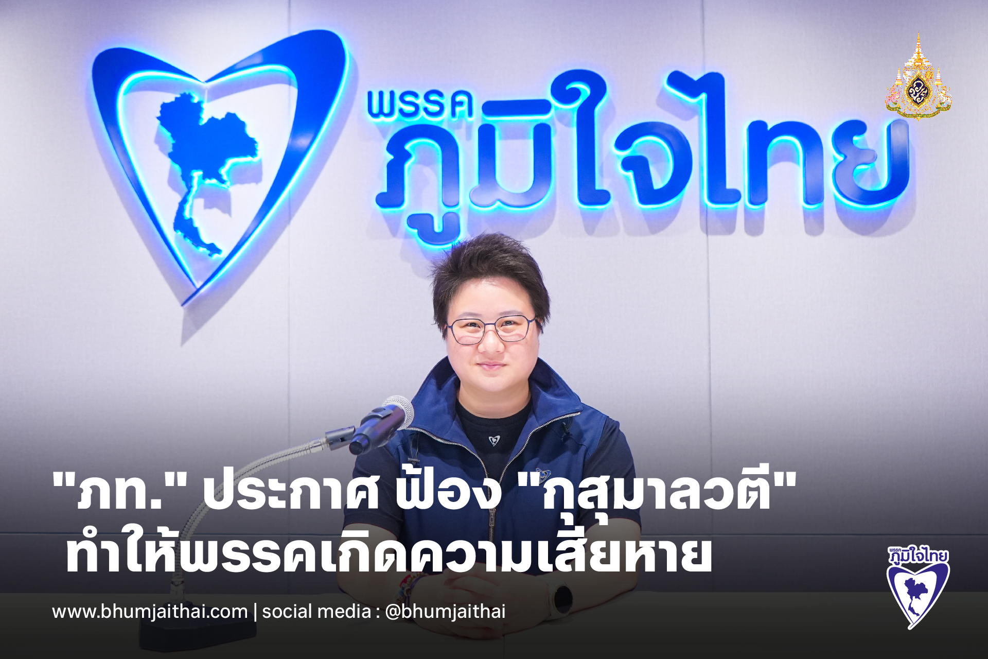 "ภูมิใจไทย" ประกาศ ฟ้อง "กุสุมาลวตี" ทำให้พรรคเกิดความเสียหาย