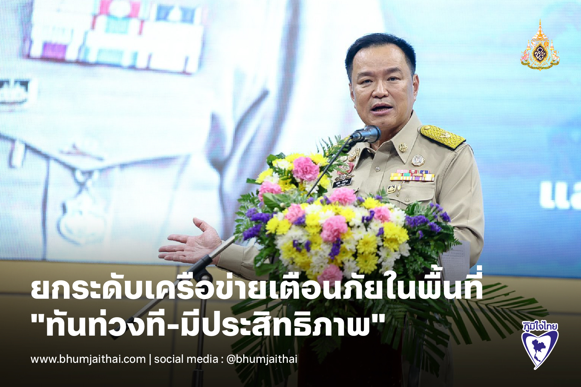 "อนุทิน" เปิดประชุมเพิ่มประสิทธิภาพการเฝ้าระวังสาธารณภัย กำชับทุกหน่วยงาน ทุกจังหวัด ยกระดับเครือข่ายเตือนภัยระดับท้องถิ่นอย่าง "ทันท่วงที-มีประสิทธิภาพ" เพื่อความปลอดภัยของประชาชน