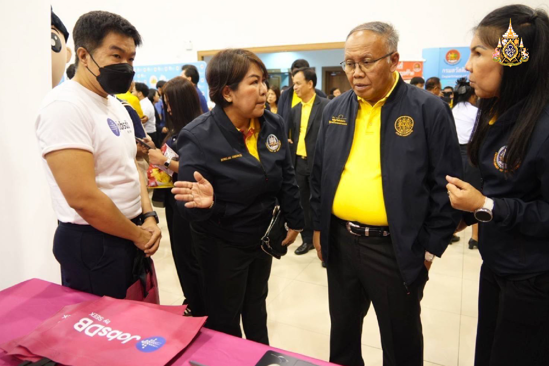 วันที่ 23 พฤษภาคม 2568 นายสิรภพ ดวงสอดศรี ผู้ช่วยรัฐมนตรีประจำกระทรวงแรงงานได้รับมอบหมายจากนายพิพัฒน์ รัชกิจประการ รัฐมนตรีว่าการกระทรวงแรงงาน ให้ เป็นประธานในพิธีเปิดงาน “JOB FAIR 2025 @ปทุมธานี” เพื่อส่งเสริมการมีงานทำให้กับประชาชนทุกกลุ่มเป้าหมาย ทั้งนักเรียน นักศึกษา ผู้ว่างงาน แรงงานทั่วไป โดยมีนายสิบหมื่นชัย โพธิสินธุ์ รองอธิบดีกรมการจัดหางาน กล่าวรายงาน ดร. ศันสนีย์ สายะสนธิ ผู้อำนวยการวิทยาลัยการอาชีวศึกษาปทุมธานี และผู้บริหารกระทรวงแรงงาน ร่วมเป็นเกียรติ นายสมคิด จันทมฤก ผู้ว่าราชการจังหวัดปทุมธานี กล่าวต้อนรับ หัวหน้าส่วนราชการสังกัดกระทรวงแรงงานจังหวัดปทุมธานี นักเรียน นักศึกษา สถานประกอบการภาคเอกชน ร่วมให้การต้อนรับ ณ หอประชุมปทุมมาศ วิทยาลัยการอาชีวศึกษาปทุมธานี จังหวัดปทุมธานี