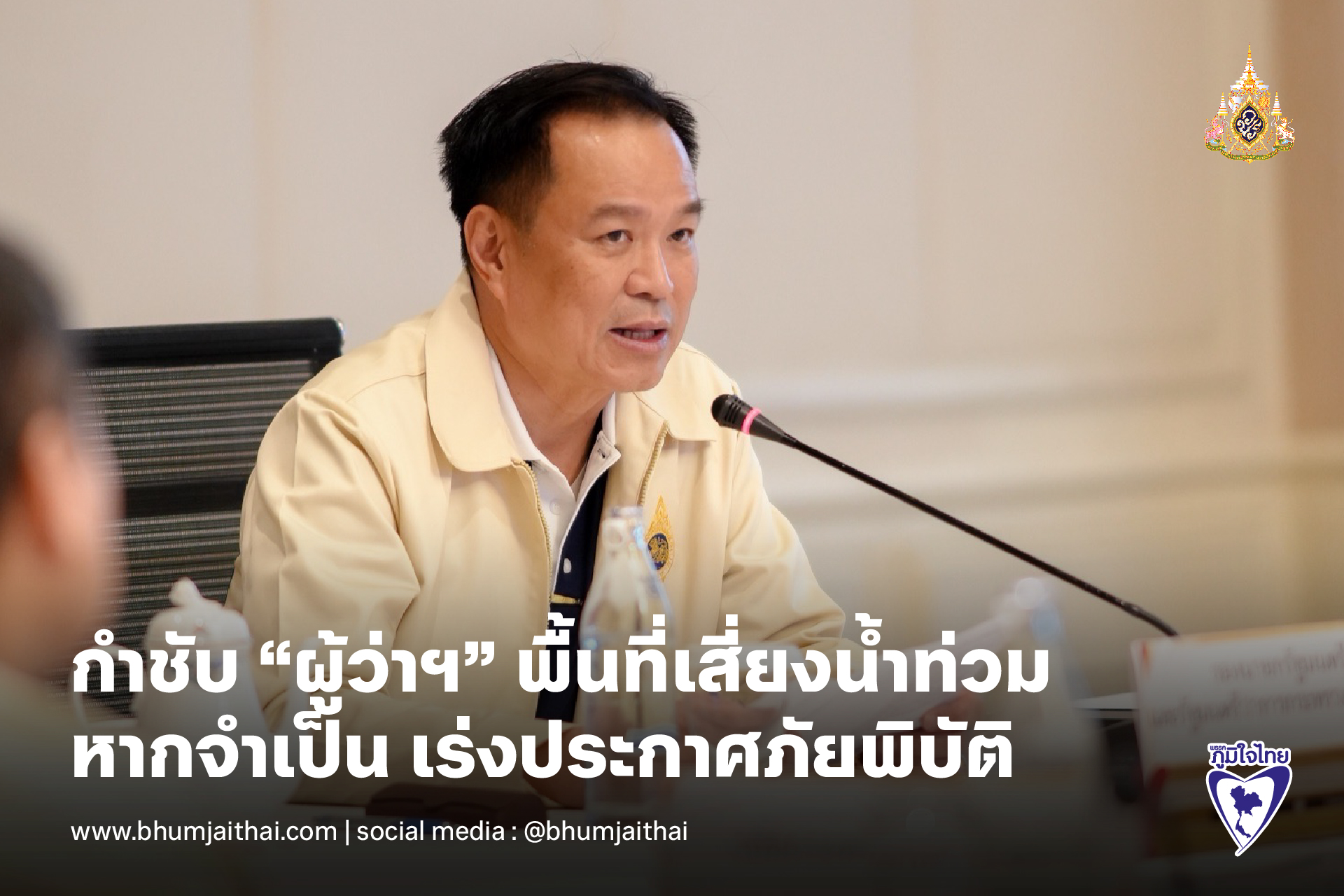 กำชับ “ผู้ว่าฯ” พื้นที่เสี่ยงน้ำท่วม หากจำเป็น ให้เร่งประกาศภัยพิบัติ เพิ่มประสิทธิภาพการแก้ไขปัญหา