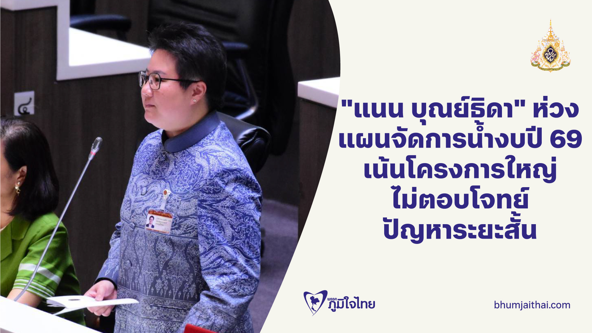 รู้เท่าทันภัยพิบัติ! แนน บุณย์ธิดา ห่วงแผนจัดการน้ำ งบปี 69 เน้นโครงการใหญ่ ไม่ตอบโจทย์ปัญหาระยะสั้น