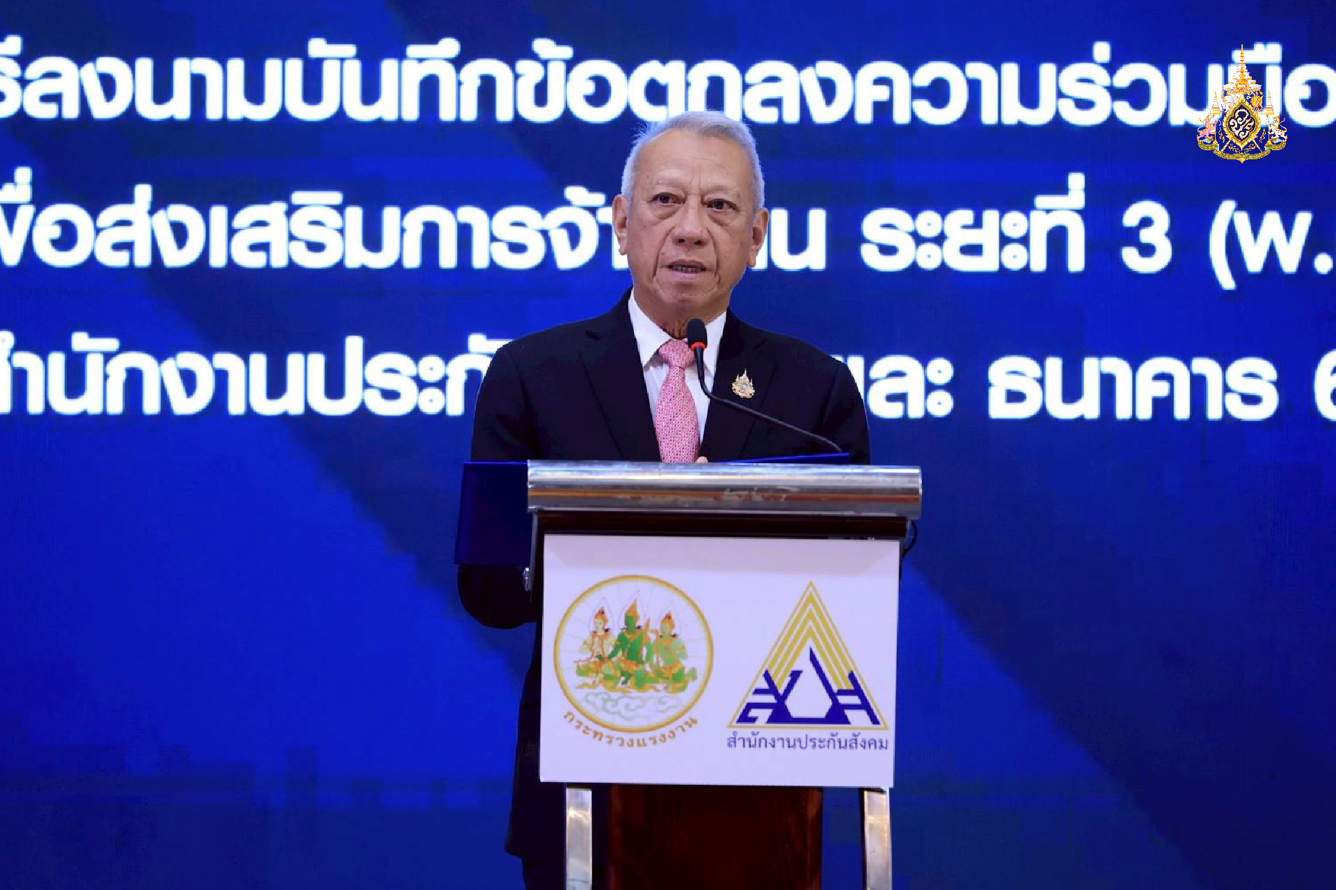 วันที่ 29 พฤษภาคม 2568 นายพิพัฒน์ รัชกิจประการ รัฐมนตรีว่าการกระทรวงแรงงาน เป็นประธานและสักขีพยานในพิธีลงนามบันทึกข้อตกลงความร่วมมือในโครงการสินเชื่อเพื่อส่งเสริมการจ้างงาน ระยะที่ 3 (พ.ศ. 2568 – 2569) ระหว่างสำนักงานประกันสังคม ร่วมมือกับ ธนาคารเพื่อการเกษตรและสหกรณ์การเกษตร ธนาคารเพื่อการส่งออกและนำเข้าแห่งประเทศไทย ธนาคารกรุงไทย จำกัด (มหาชน) ธนาคารกรุงเทพ จำกัด (มหาชน) ธนาคารยูโอบี จำกัด (มหาชน) และธนาคารไทยเครดิต จำกัด (มหาชน) โดยมี นายบุญสงค์ ทัพชัยยุทธ์ ปลัดกระทรวงแรงงาน นางมารศรี ใจรังษีเลขาธิการสำนักงานประกันสังคม คณะกรรมการสำนักงานประกันสังคม คณะผู้บริหารกระทรวงแรงงาน คณะผู้บริหารธนาคารที่เข้าร่วมโครงการทั้ง 6 แห่ง ผู้แทนสภาหอการค้าแห่งประเทศไทย ผู้แทนสมาพันธ์เอสเอ็มอีไทย แขกผู้มีเกียรติ สื่อมวลชน และเจ้าหน้าที่สำนักงานประกันสังคม ให้การต้อนรับ ณ ห้องประชุมวายุภักษ์ แกรนด์บอลรูม ชั้น 4 โรงแรมเซ็นทารา ไลฟ์ ศูนย์ราชการและคอนเวนชันเซ็นเตอร์ แจ้งวัฒนะ กรุงเทพมหานคร