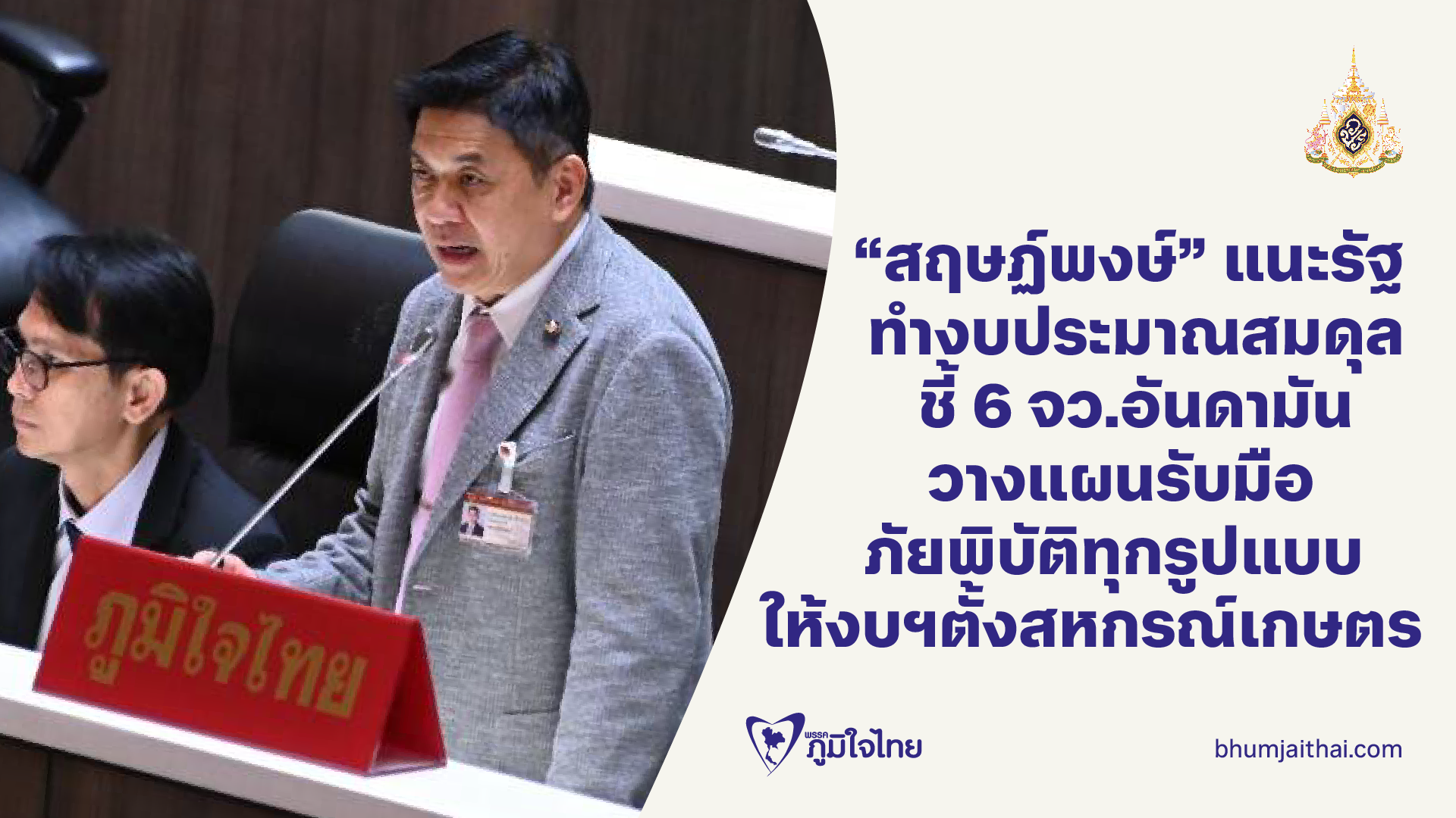 "สฤษฏ์พงษ์" แนะรัฐ ทำงบประมาณสมดุล ชี้ 6 จว.อันดามัน วางแผนรับมือ ภัยพิบัติทุกรูปแบบ ให้งบฯตั้งสหกรณ์เกษตร