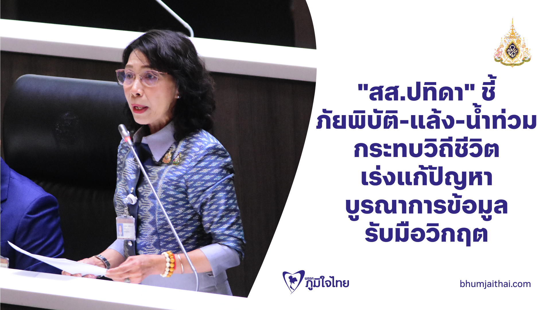 "สส.ปทิดา" ชี้ ภัยพิบัติ-แล้ง-น้ำท่วม กระทบวิถีชีวิต เร่งแก้ปัญหา บูรณาการข้อมูล รับมือวิกฤต