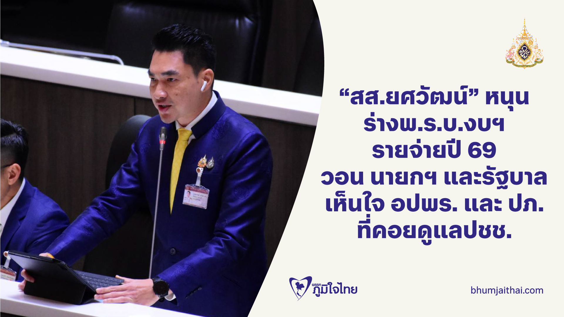 อยากเป็นคนที่ถูกรัก ไม่ใช่ถูกลืม! “สส.ยศวัฒน์” หนุน ร่างพ.ร.บ.งบฯ รายจ่ายปี 69 พร้อมวอน นายกฯ และรัฐบาล เห็นใจ ห่วงใย อปพร. และ ปภ. ที่คอยดูแลปชช.เมื่อเกิดเหตุภัยพิบัติต่างๆ