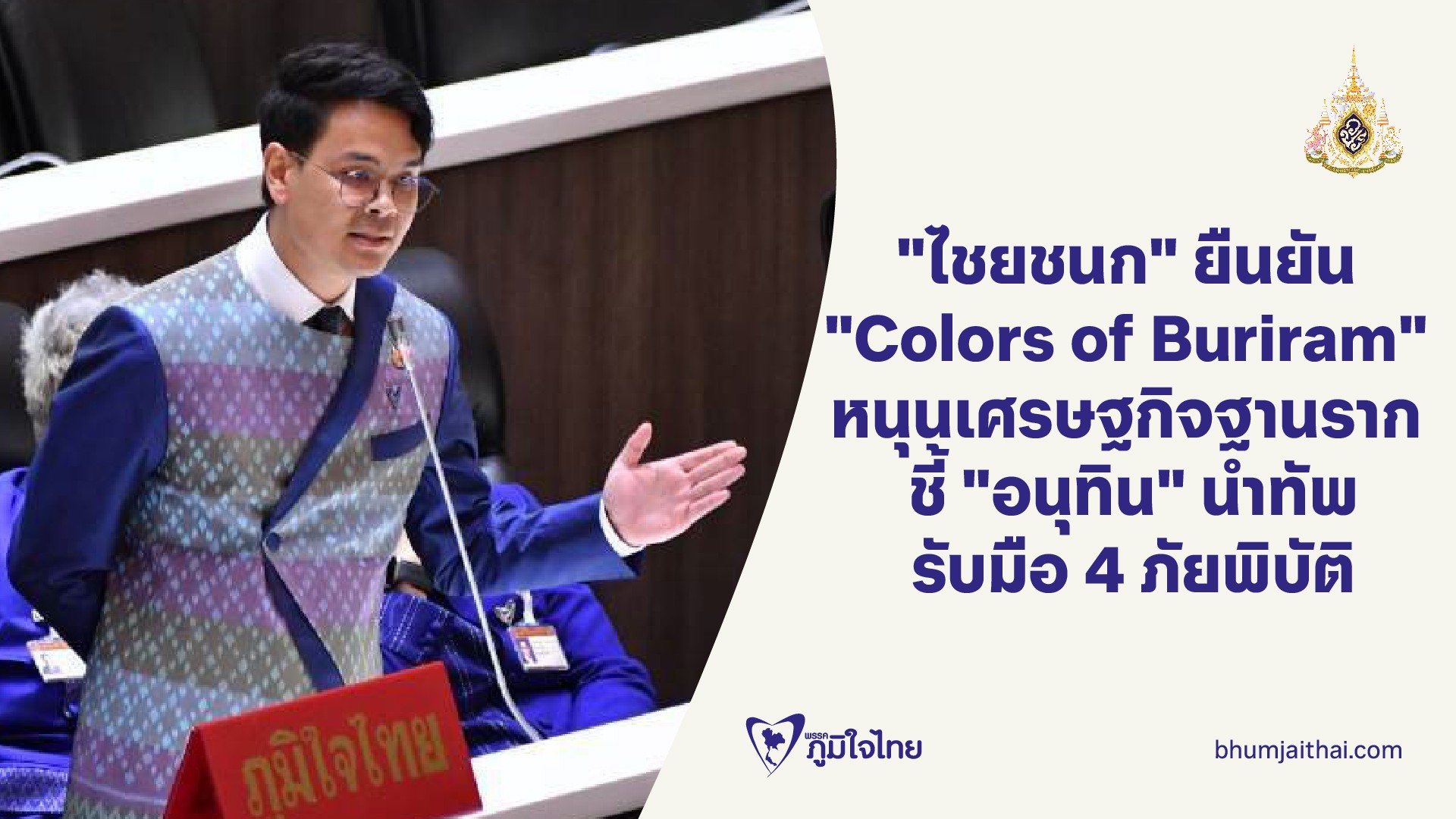 "ไชยชนก" ยืนยัน "Colors of Buriram" หนุนเศรษฐกิจฐานราก ชี้ "อนุทิน" นำทัพ รับมือ 4 ภัยพิบัติ