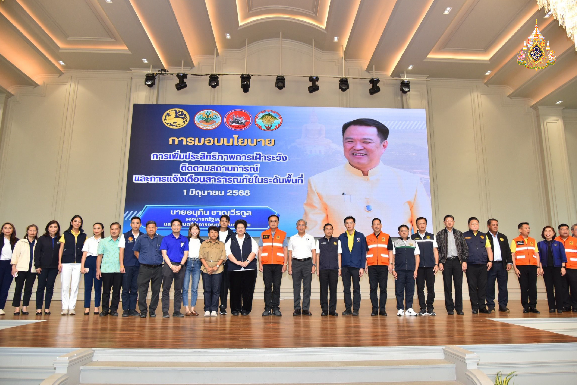 น.ส.ไตรศุลี ไตรสรณกุล เลขานุการรมว.มหาดไทยและโฆษกกระทรวงมหาดไทย กล่าวว่า วันนี้ (1 มิ.ย. 68) เวลา 10.00 น. นายอนุทิน ชาญวีรกูล รองนายกรัฐมนตรีและรมว.มหาดไทย ลงพื้นที่มอบนโยบายการเพิ่มประสิทธิภาพการเฝ้าระวัง ติดตามสถานการณ์ และการแจ้งเตือนสาธารณภัยในระดับพื้นที่ (จ.อ่างทอง สิงห์บุรี และชัยนาท) ณ SKY CONVENTION HALL สุพรแกรนด์ โฮเต็ล อ.เมืองอ่างทอง จ.อ่างทอง โดยมี น.ส.ศุภมาส อิศรภักดี รมว.การอุดมศึกษา วิทยาศาสตร์ วิจัยและนวัตกรรม นายภราดร ปริศนานันทกุล รองประธานสภาผู้แทนราษฎร คนที่ 2 นายอรรษิษฐ์ สัมพันธรัตน์ ปลัดกระทรวงมหาดไทย ศ.ดร.ศุภชัย ปทุมนากุล ปลัดกระทรวงการอุดมศึกษา วิทยาศาสตร์ วิจัยและนวัตกรรม พร้อมด้วยผู้บริหารระดับสูงของกระทรวงมหาดไทย ผู้ว่าราชการจังหวัดอ่างทอง สิงห์บุรี ชัยนาท สมาชิกสภาผู้แทนราษฎร หัวหน้าส่วนราชการ ข้าราชการ กำนัน ผู้ใหญ่บ้าน ผู้บริหารองค์กรปกครองส่วนท้องถิ่น และสื่อมวลชน ร่วมงานกว่า 1,000 คน