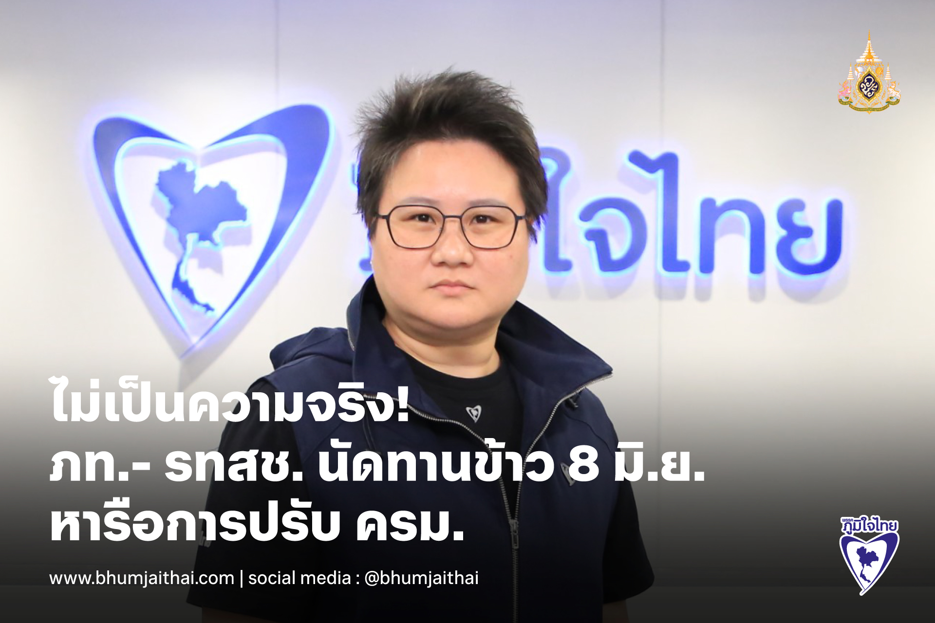 “โฆษกพรรค ภท.” ปฎิเสธข่าว ภท. และ รทสช. นัดทานข้าว 8 มิ.ย. หารือการปรับ ครม.