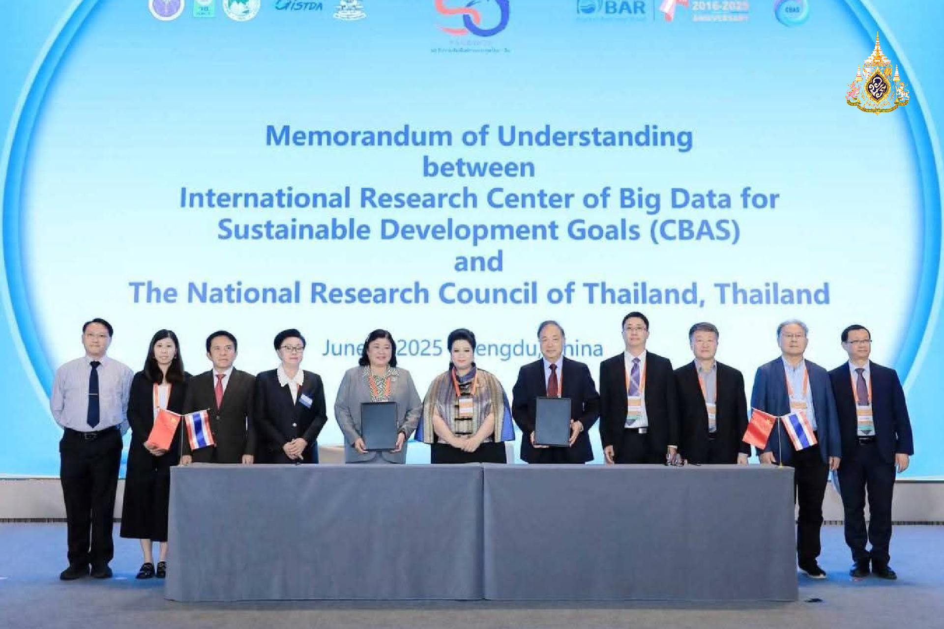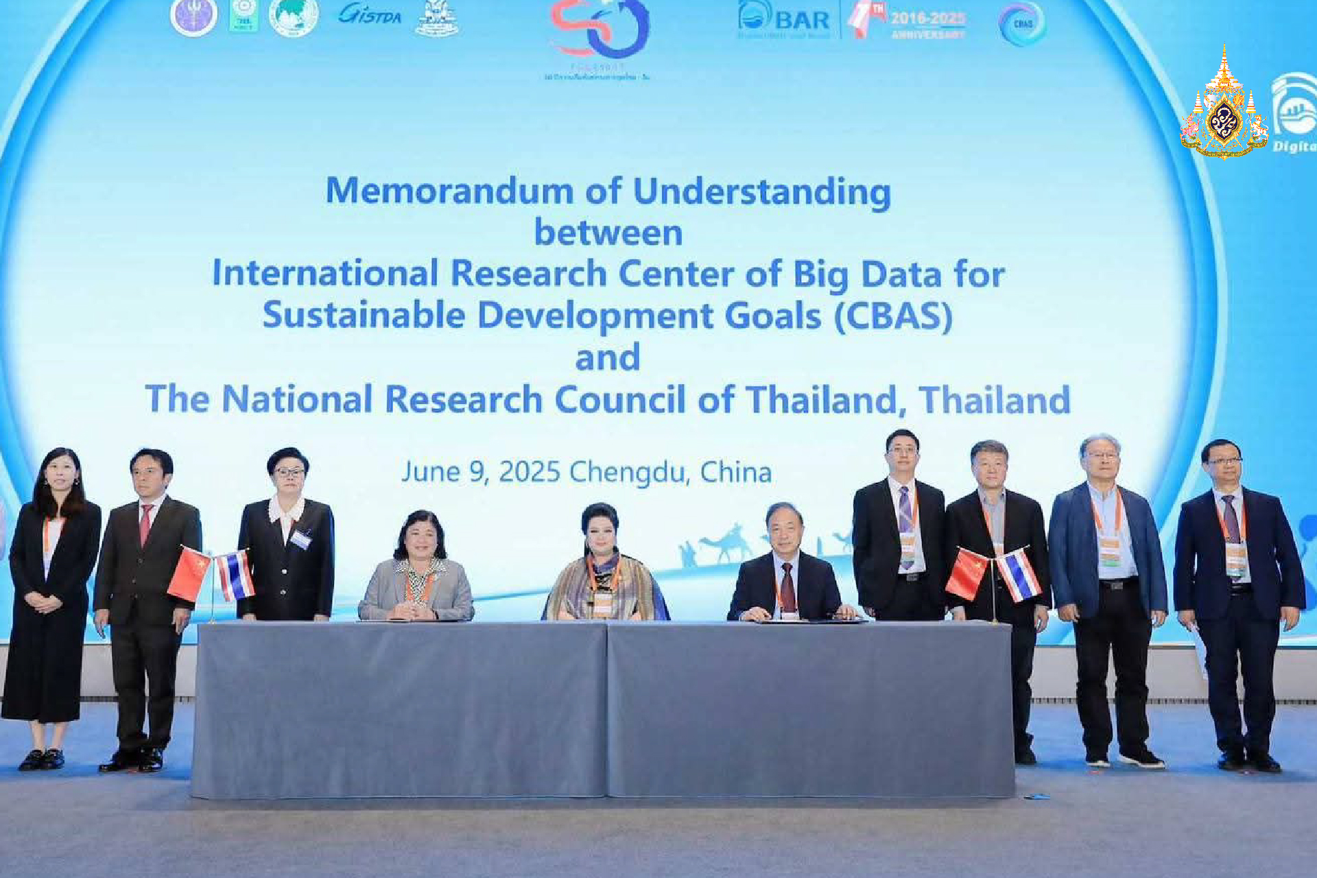 นางสาวศุภมาส อิศรภักดี รัฐมนตรีว่าการกระทรวงการอุดมศึกษา วิทยาศาสตร์ วิจัยและนวัตกรรม ร่วมเป็นเกียรติในพิธีลงนาม MOU ในระหว่างการประชุม The 9th Digital Belt and Road Conference (DBAR2025) ซึ่งเป็นการลงนามบันทึกความเข้าใจว่าด้วยความร่วมมือภายใต้โครงการดิจิทัลหนึ่งแถบหนึ่งเส้นทาง ระหว่าง สำนักงานการวิจัยแห่งชาติ(วช.) กระทรวงการอุดมศึกษา วิทยาศาสตร์ วิจัยและนวัตกรรม โดย ดร. วิภารัตน์ ดีอ่อง ผู้อำนวยการสำนักงานการวิจัยแห่งชาติ กับ ศูนย์วิจัยนานาชาติด้านข้อมูลขนาดใหญ่เพื่อการพัฒนาที่ยั่งยืน สถาบันบัณฑิตวิทยาศาสตร์จีน โดย Prof. Guo Huadong, DBAR Chair และ Director General of CBAS พร้อมกันนี้ การลงนามร่วมด้วยเครือข่ายศูนย์แห่งความเป็นเลิศนานาชาติ ดิจิทัลหนึ่งแถบหนึ่งเส้นทาง กรุงเทพฯ (DBAR-ICoE-Bangkok) โดย ดร.มณทิพย์ ศรีรัตนา ผู้อำนวยการศูนย์แห่งความเป็นเลิศนานาชาติ ดิจิทัลหนึ่งแถบหนึ่งเส้นทาง กรุงเทพฯ วช., ดร.ปกรณ์ อาภาพันธุ์ ผู้อำนวยการสำนักงานพัฒนาเทคโนโลยีอวกาศและภูมิสารสนเทศ, ผศ.ดร. Xue Wenchao สถาบันเทคโนโลยีแห่งเอเชีย และ ผศ.ดร.จิรสรณ์ สันติสิริสมบูรณ์ มหาวิทยาลัยรามคำแหง ร่วมเป็นพยานในการลงนาม ซึ่งจัดขึ้น ณ โรงแรม DoubleTree by Hilton Chengdu Xinglong Lake เมืองเฉิงตู สาธารณรัฐประชาชนจีน เมื่อวันที่ 9 มิถุนายน 2568