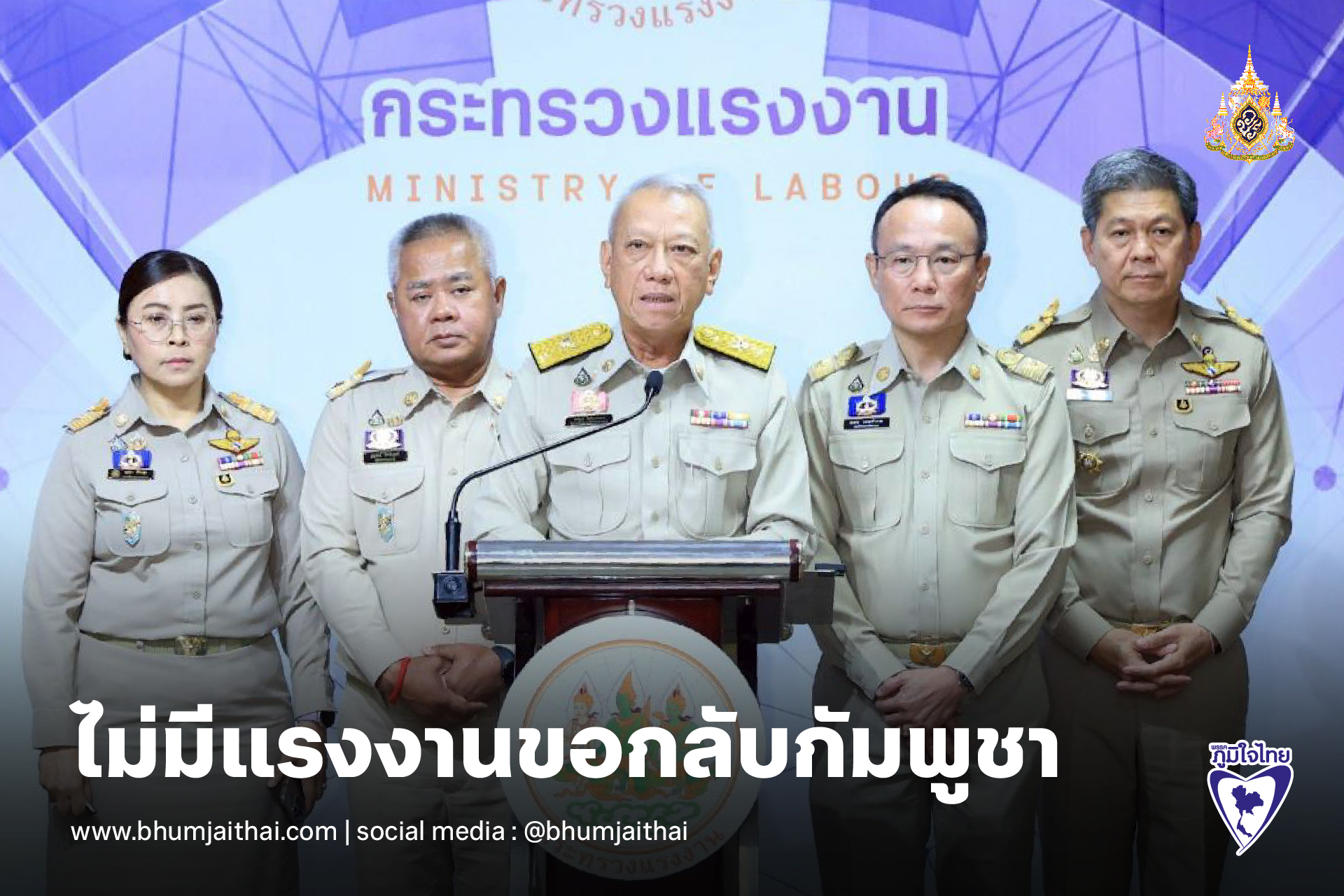 วันที่ 16 มิถุนายน 2568 ที่กระทรวงแรงงาน นายพิพัฒน์ รัชกิจประการ รมว.แรงงาน แถลงข่าวกรณีผู้นำประเทศกัมพูชาประกาศให้แรงงานกัมพูชากลับประเทศว่า แรงงานกัมพูชาทำงานอยู่ในประเทศไทยเกือบ 5 แสนคน ที่ถูกต้องตามกฎหมาย ประมาณ 400,000 คน และเข้ามาทำงานแบบไม่ถูกต้อง รวมถึงมีแรงงานเก็บผลไม้ตามฤดูกาลประมาณ 20,000 คน
