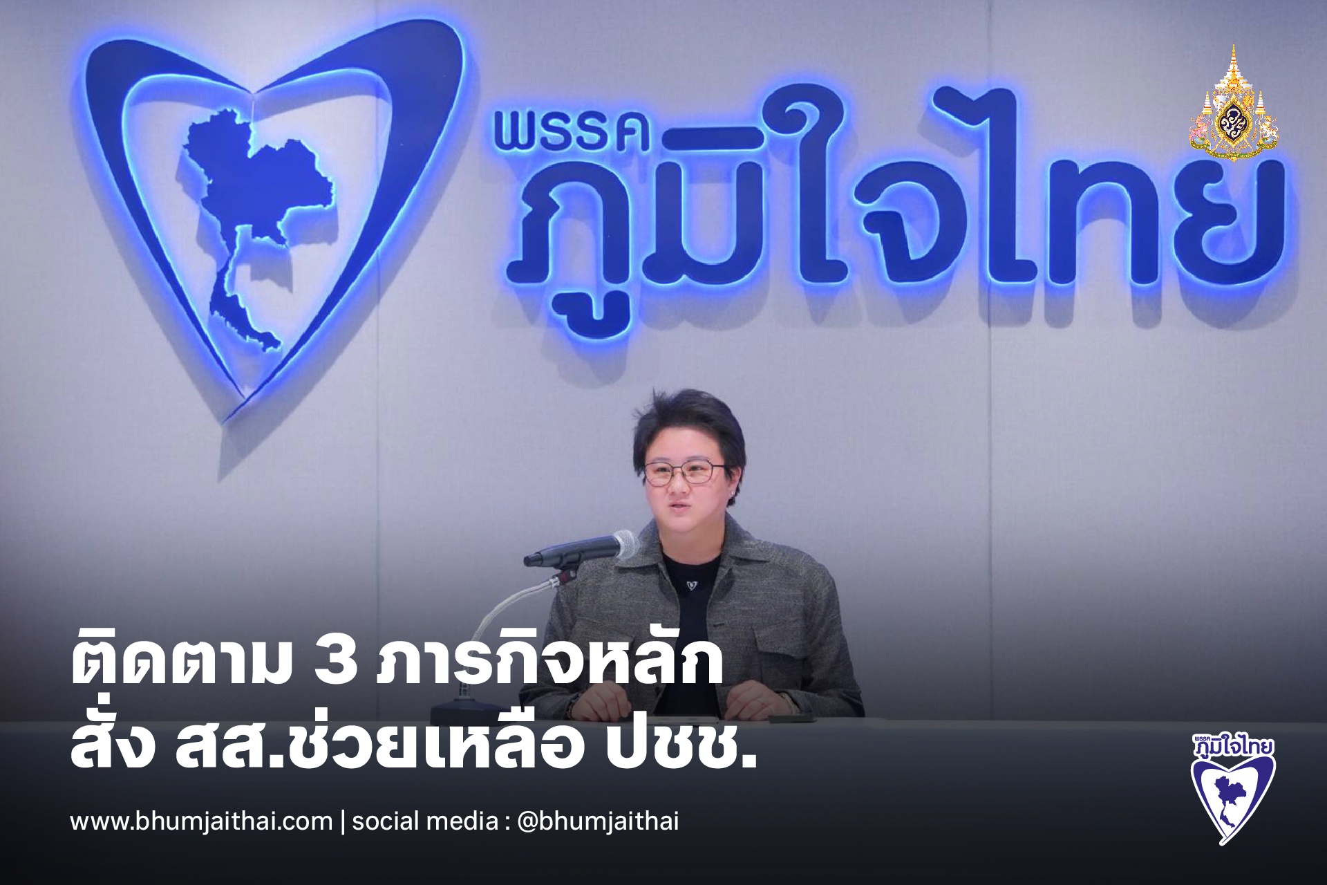 โฆษก ภท. เผย ประชุมพรรคติดตาม 3 ภารกิจหลัก รับมือภัยมั่นคง-ภัยธรรมชาติ-ภัยเศรษฐกิจ สั่ง สส.ลุยพื้นที่ช่วยเหลือประชาชน