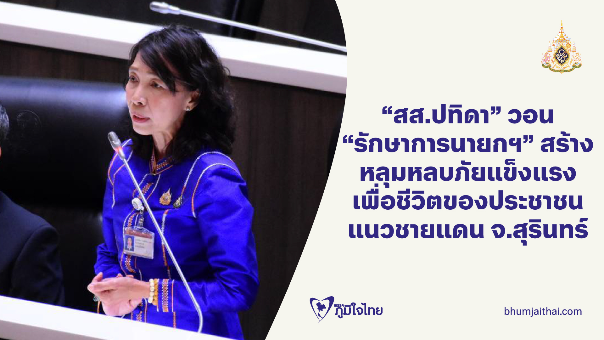 “เมื่อวันที่ 11 มิถุนายน 2568 นางสาวแพรทองธาร ชินวัตร นายกรัฐมนตรี ตําแหน่ง ณ ขณะนั้น ได้เดินทางไปยังสุรินทร์ เพื่อติดตามสถานการณ์ และได้เดินทางไปดูหลุมหลบภัยของพี่น้องประชาชนที่เราทําขึ้นชั่วคราว ท่านได้เอ่ยปากถามว่าหลุมหลบภัยลักษณะนี้จะมีความปลอดภัยจริงหรือไม่ ดิฉันได้ฟังดังนั้นก็รู้สึกว่าวันนี้เราน่าจะมีอะไรเกิดขึ้นในพื้นที่ของเราบ้าง ท่านน่าจะมีการพิจารณาจัดสรรงบประมาณในการทําหลุมหลบภัยให้กับประชาชน แต่ที่ผ่านมาจากวันที่ท่านไป จนถึงวันนี้ยังไม่ได้มีงบประมาณของรัฐลงไปให้เลย ดิฉันคาดหวังกับงบกลางที่เป็นงบใช้จ่ายสะดวก และรวดเร็วในการสร้างหลุมหลบภัยให้กับพี่น้องประชาชน” นางปทิดา กล่าว