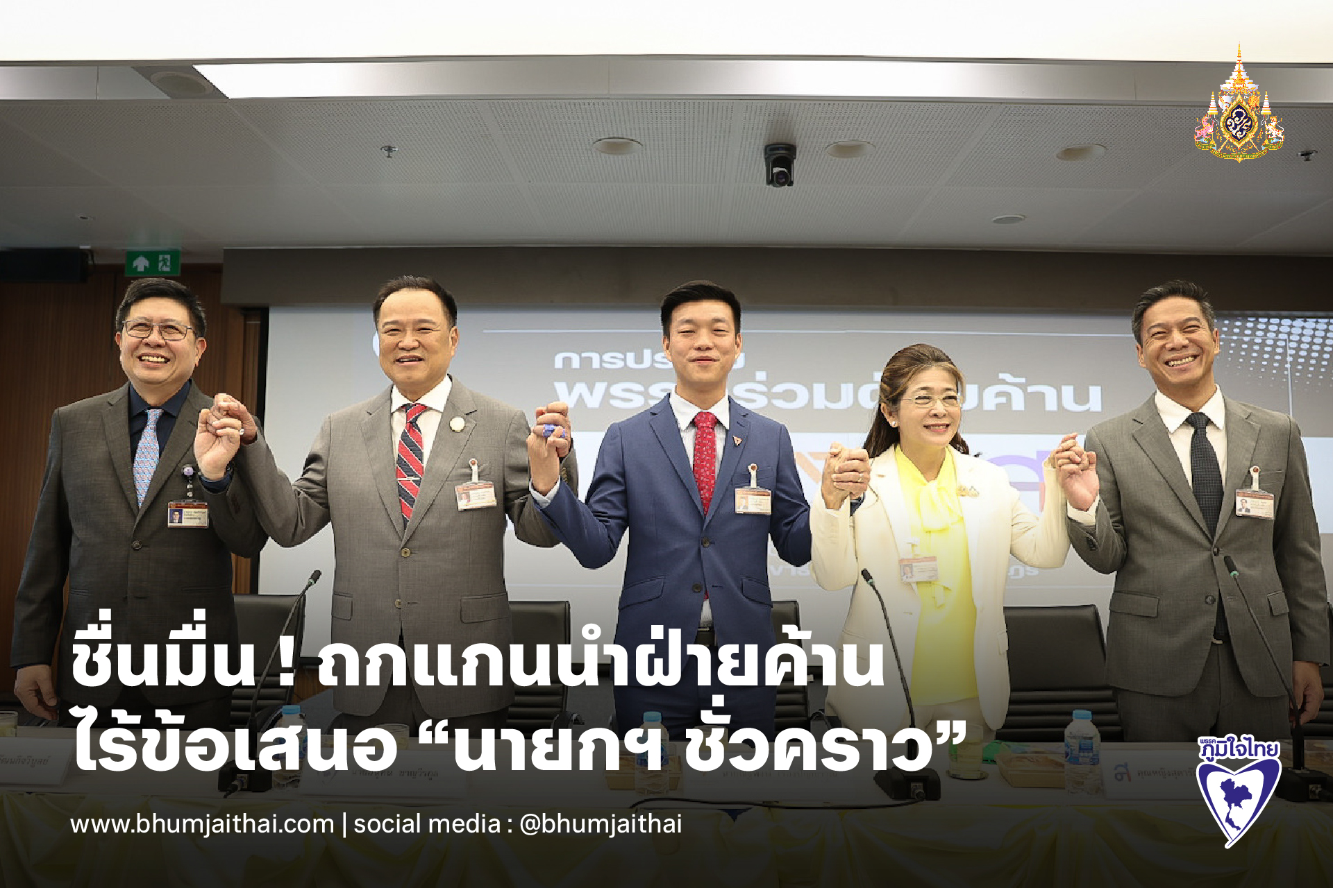 “วันนี้เรามาทำงานด้วยใจ เปิดรับการทำงานร่วมกับพรรคร่วมฝ่ายค้านทุกพรรค พรรคภูมิใจไทยจะไม่เป็นฝ่ายค้านที่สร้างความขัดแย้ง แต่จะเป็นฝ่ายค้านที่มีข้อเสนอและตรวจสอบด้วยเหตุด้วยผล เพื่อประโยชน์สูงสุดของประชาชน”