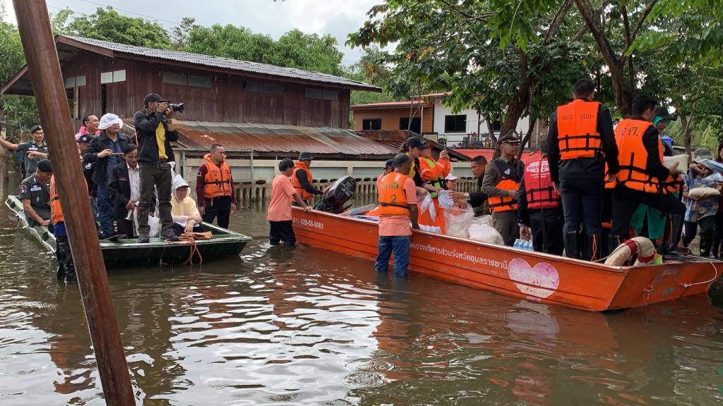 “มนัญญา” ลงเรือตรวจเยี่ยมมอบถุงยังชีพให้กำลังใจผู้ประสบอุทกภัย จ .อุบลฯ