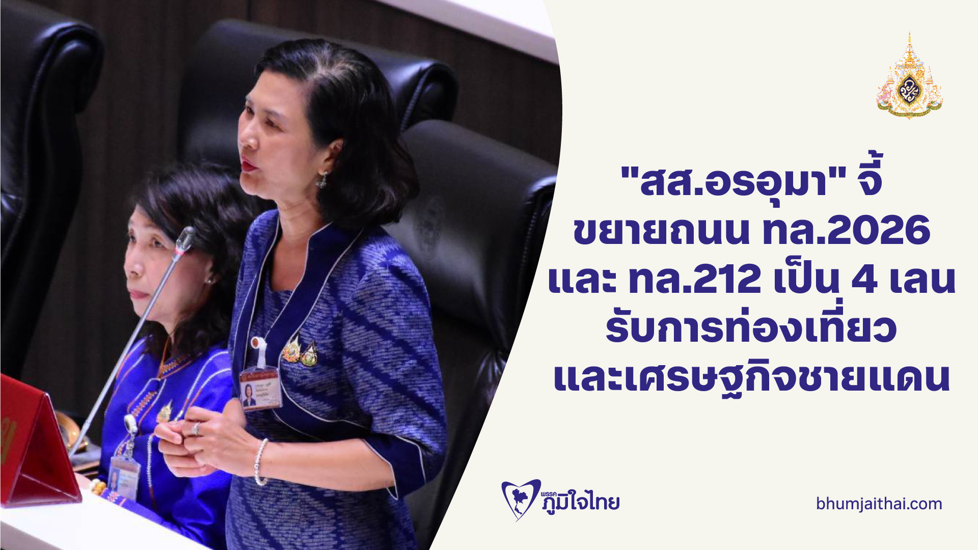 "สส.อรอุมา" จี้ขยายถนน ทล.2026 และ ทล.212 เป็น 4 เลน รับการท่องเที่ยวและเศรษฐกิจชายแดน