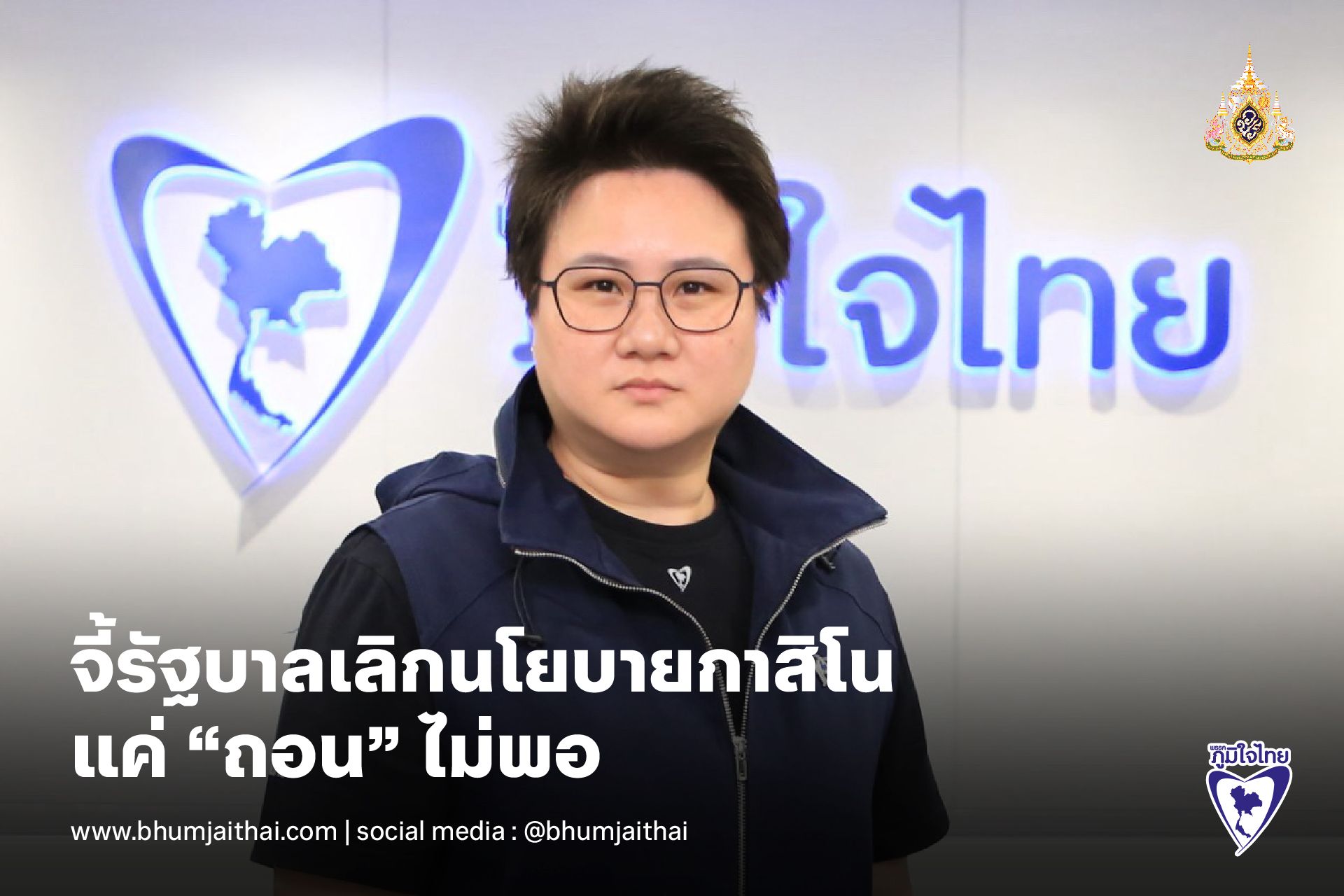 ภูมิใจไทย จี้รัฐบาลเลิกนโยบายกาสิโน แค่ “ถอน” ไม่พอ เย้ย ถอน เพราะกลัวแพ้ในสภาฯ